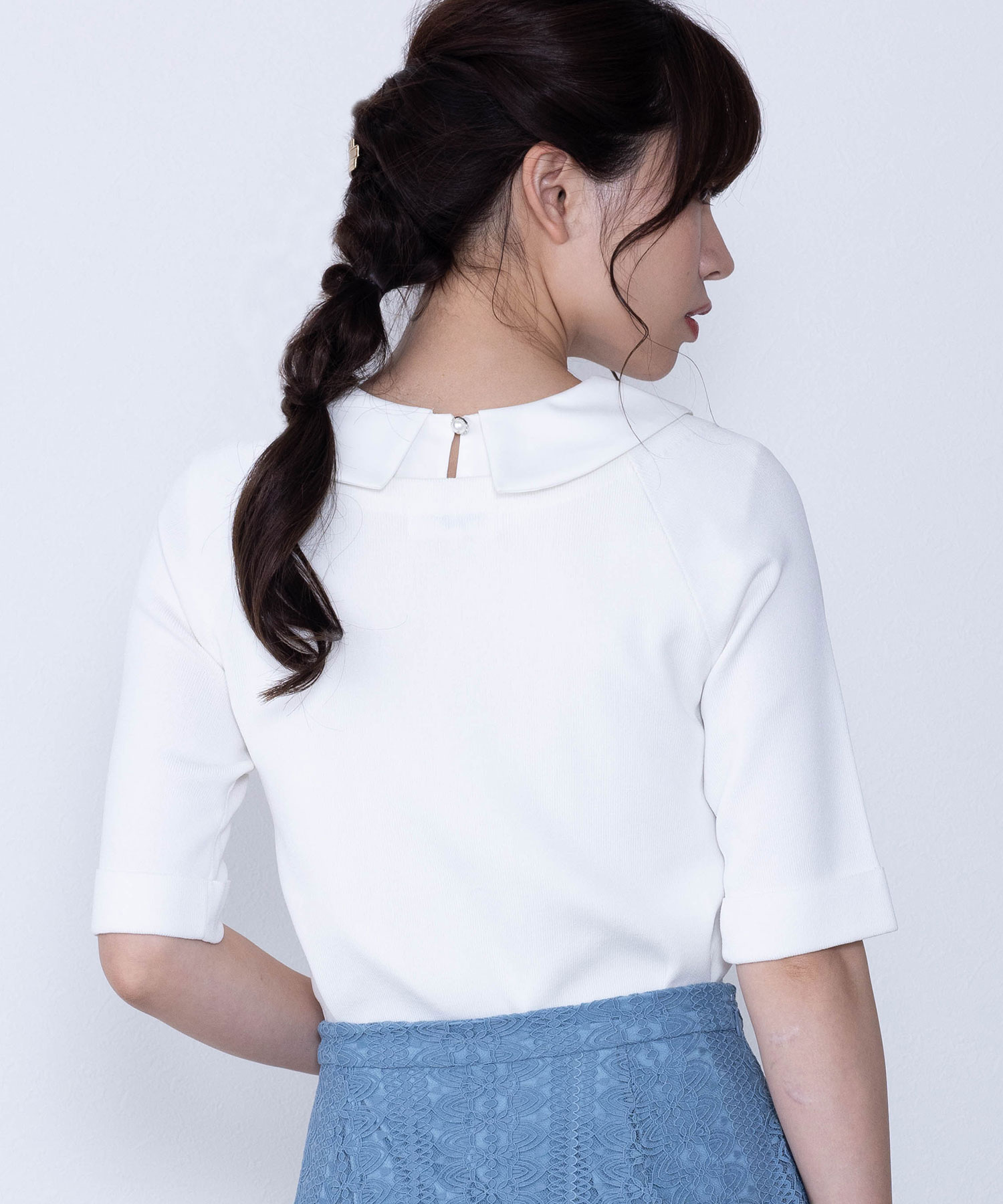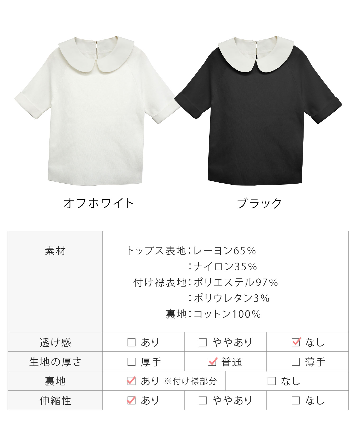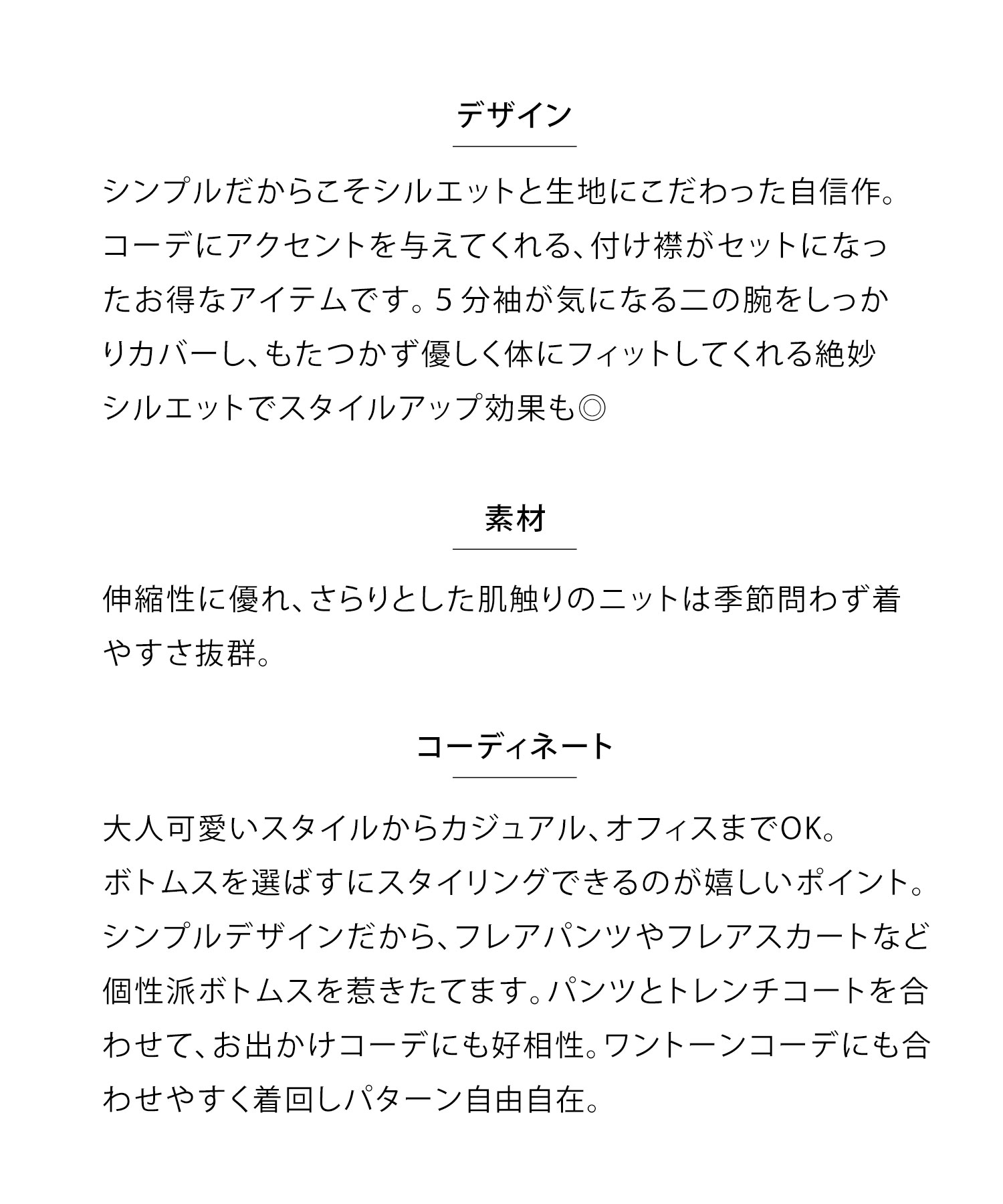 プレーンニット 付け襟 半袖トップス レディース リンクコーデ トップス ニット 襟付き 取り外せる ストレッチ 裏地 きれいめ シンプル おしゃれ 秋 冬 高見え 着回し オフィス 通勤 おでかけ 着痩せ 美シルエット ラグランスリーブ【ETERNITY】 骨格ウェーブ