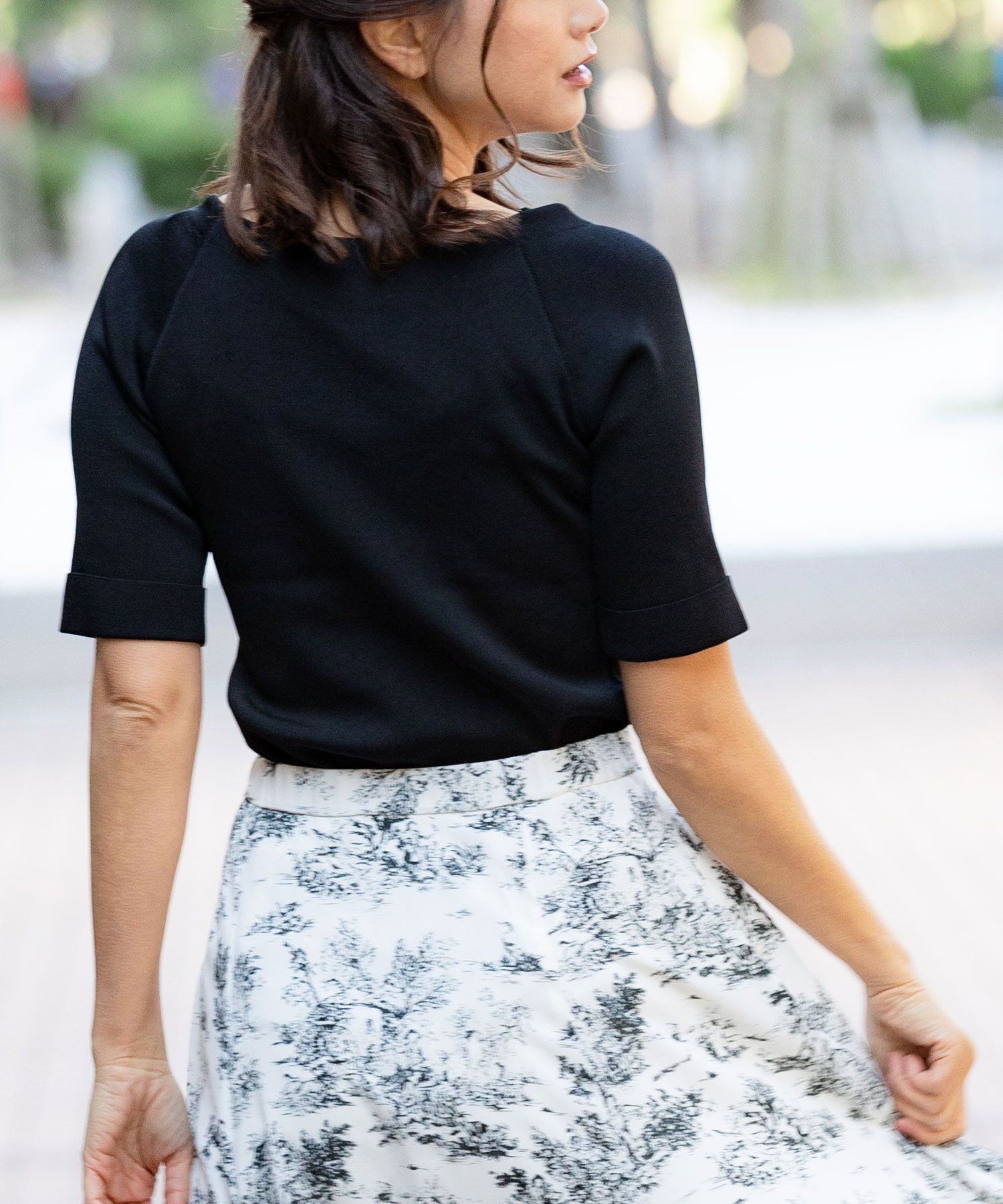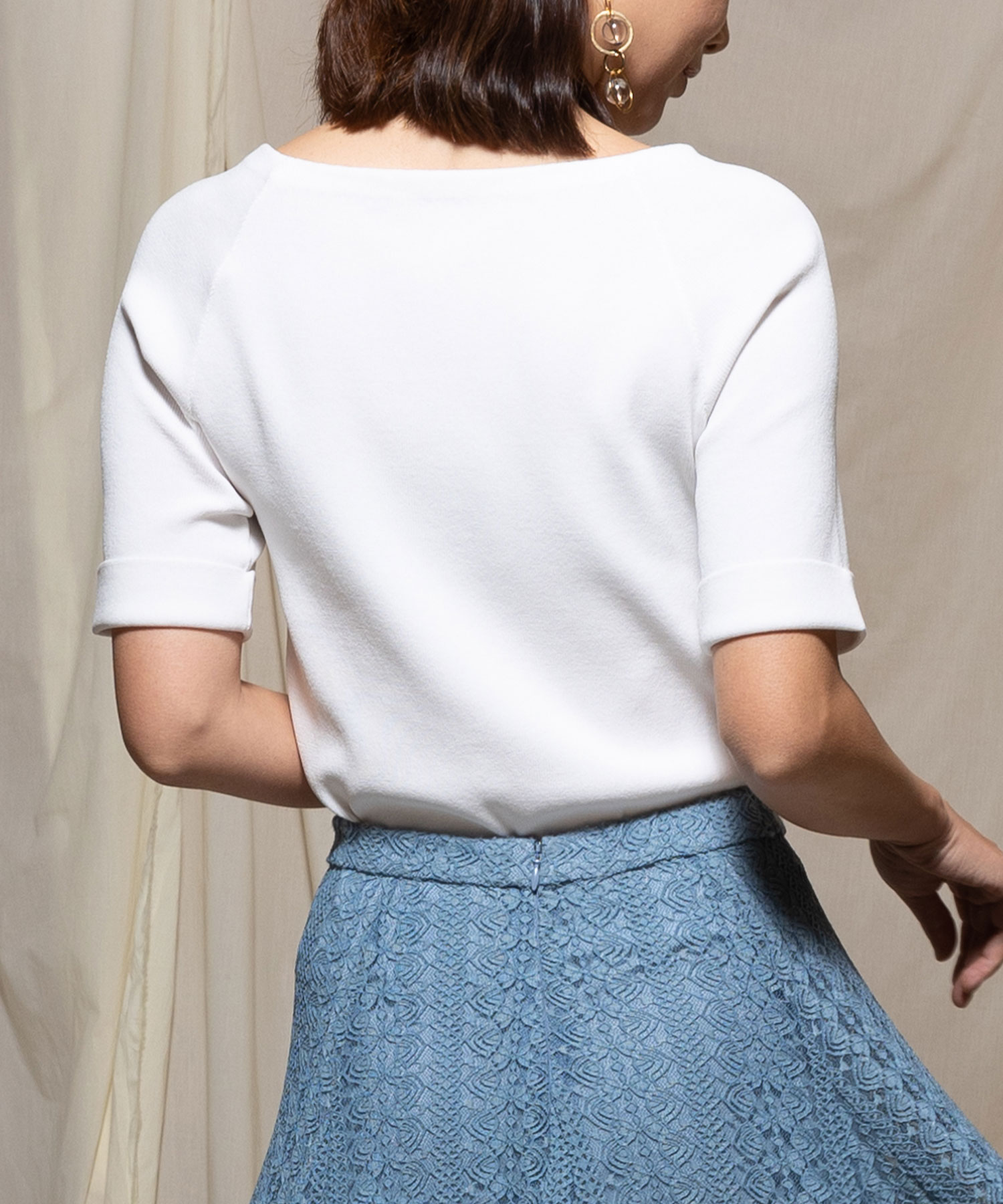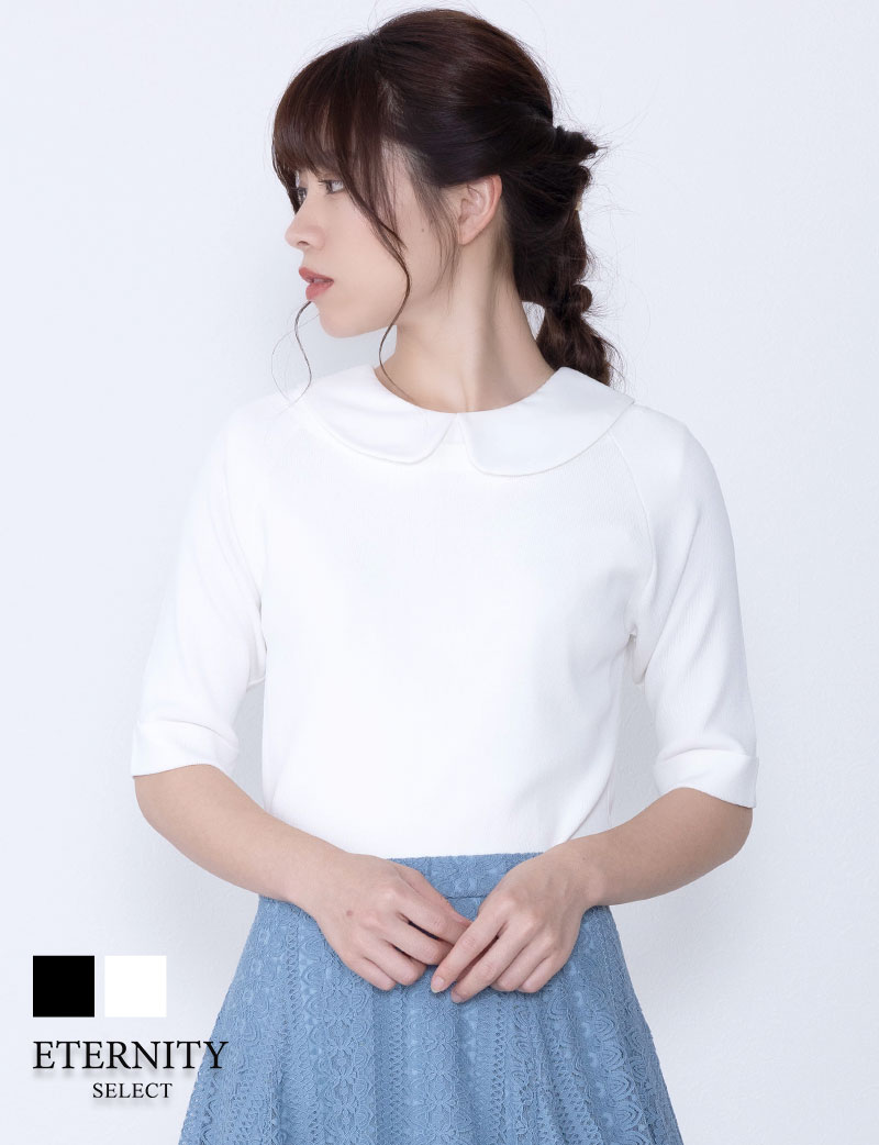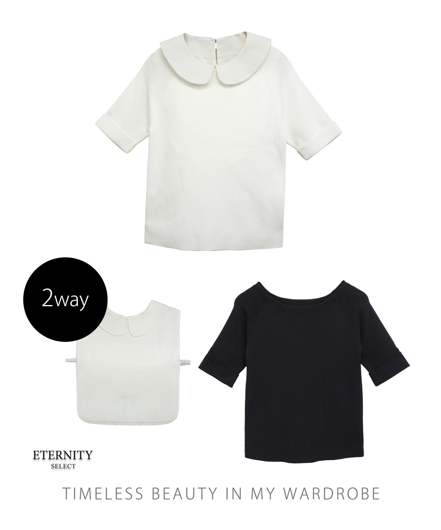 プレーンニット 付け襟 半袖トップス レディース リンクコーデ トップス ニット 襟付き 取り外せる ストレッチ 裏地 きれいめ シンプル おしゃれ 秋 冬 高見え 着回し オフィス 通勤 おでかけ 着痩せ 美シルエット ラグランスリーブ【ETERNITY】 骨格ウェーブ