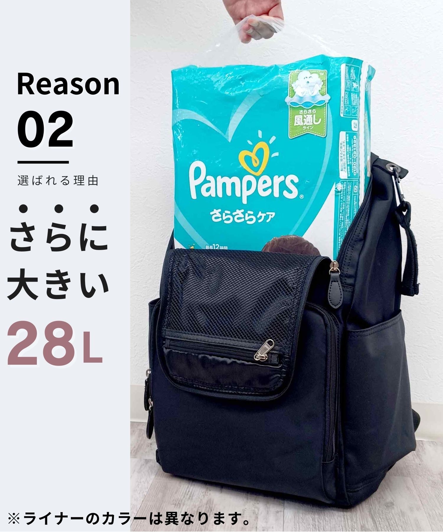 シリーズ最大サイズの28L!ママバッグに見えない上質な質感の大容量版マザーズリュックです。
