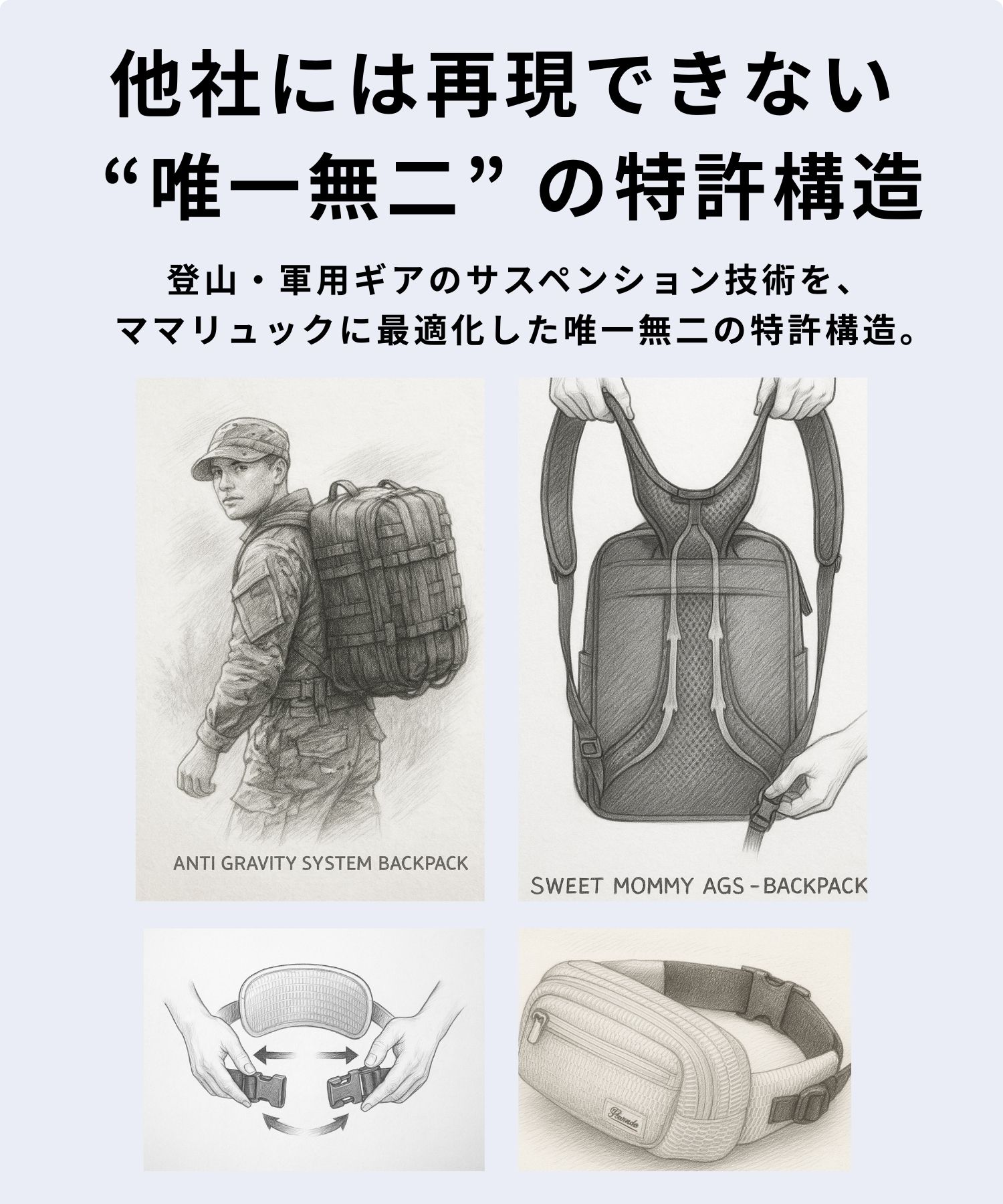 マザーズリュック 無重力 AGS 機能搭載 撥水 大容量 SWEETMOMMY