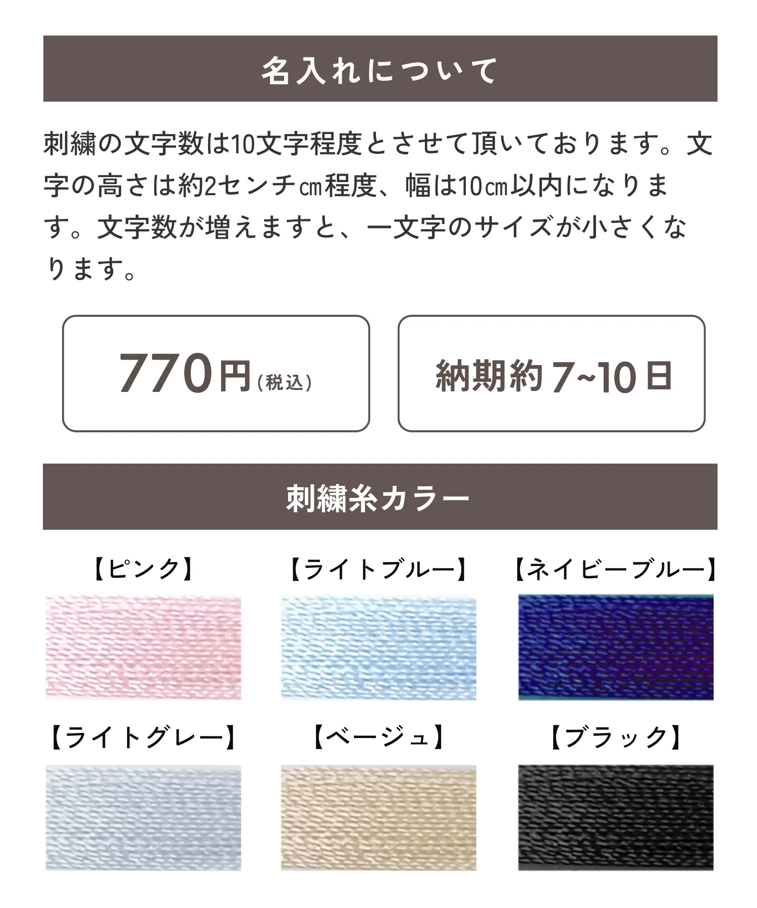 【名入れ刺繍 チケット】名入れ対象商品と一緒にかごに入れてください 選べる全6色×7フォント【名入れ刺繍 対象商品】naire
