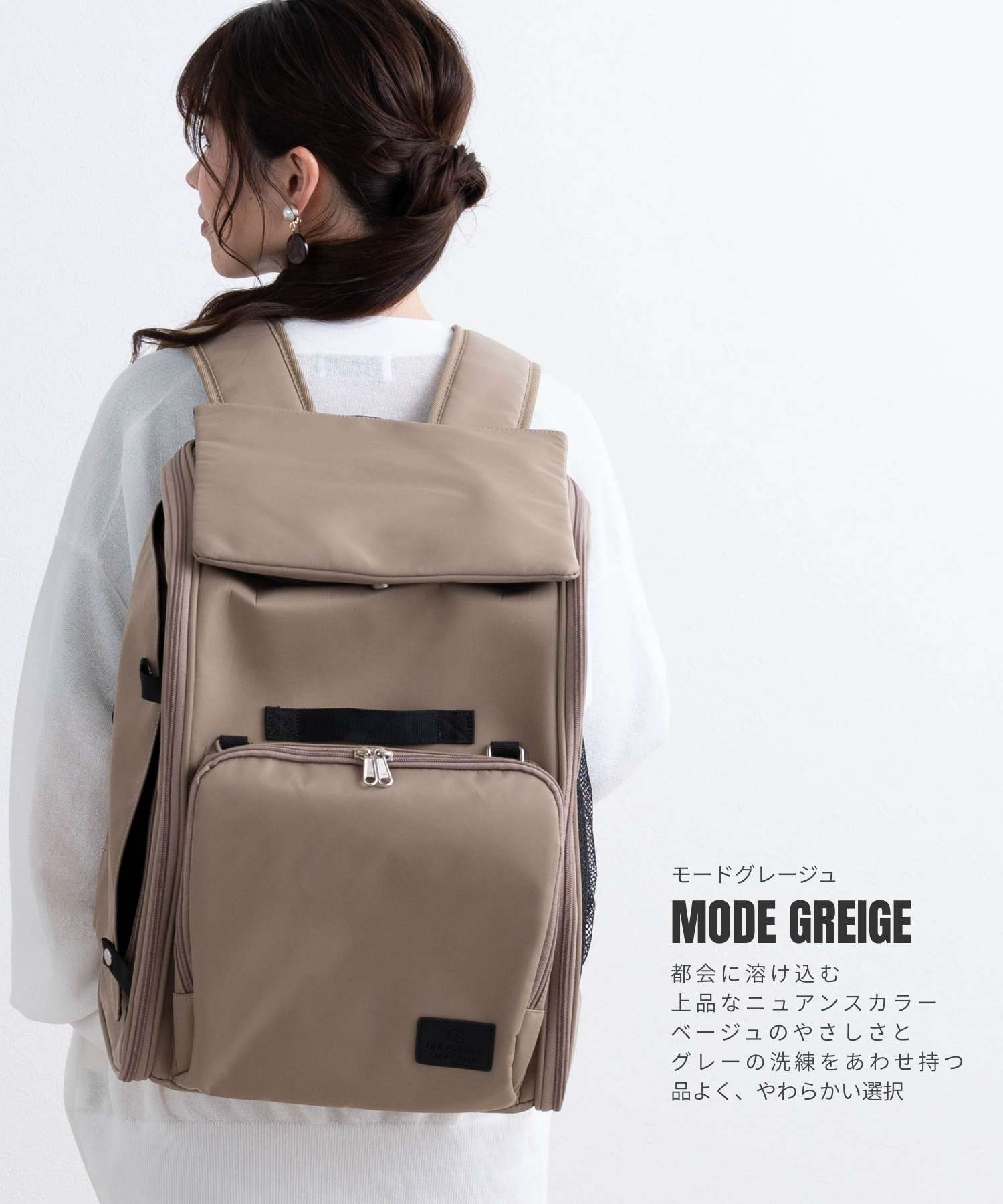 内部が広く、生地がしっかりしていて高級感ありなリュック。きれいめベージュ色が可愛かった。ポケットが多く使い勝手が良いです。背中に硬い板が入っていて折れにくそうなのが購入のポイントでした。