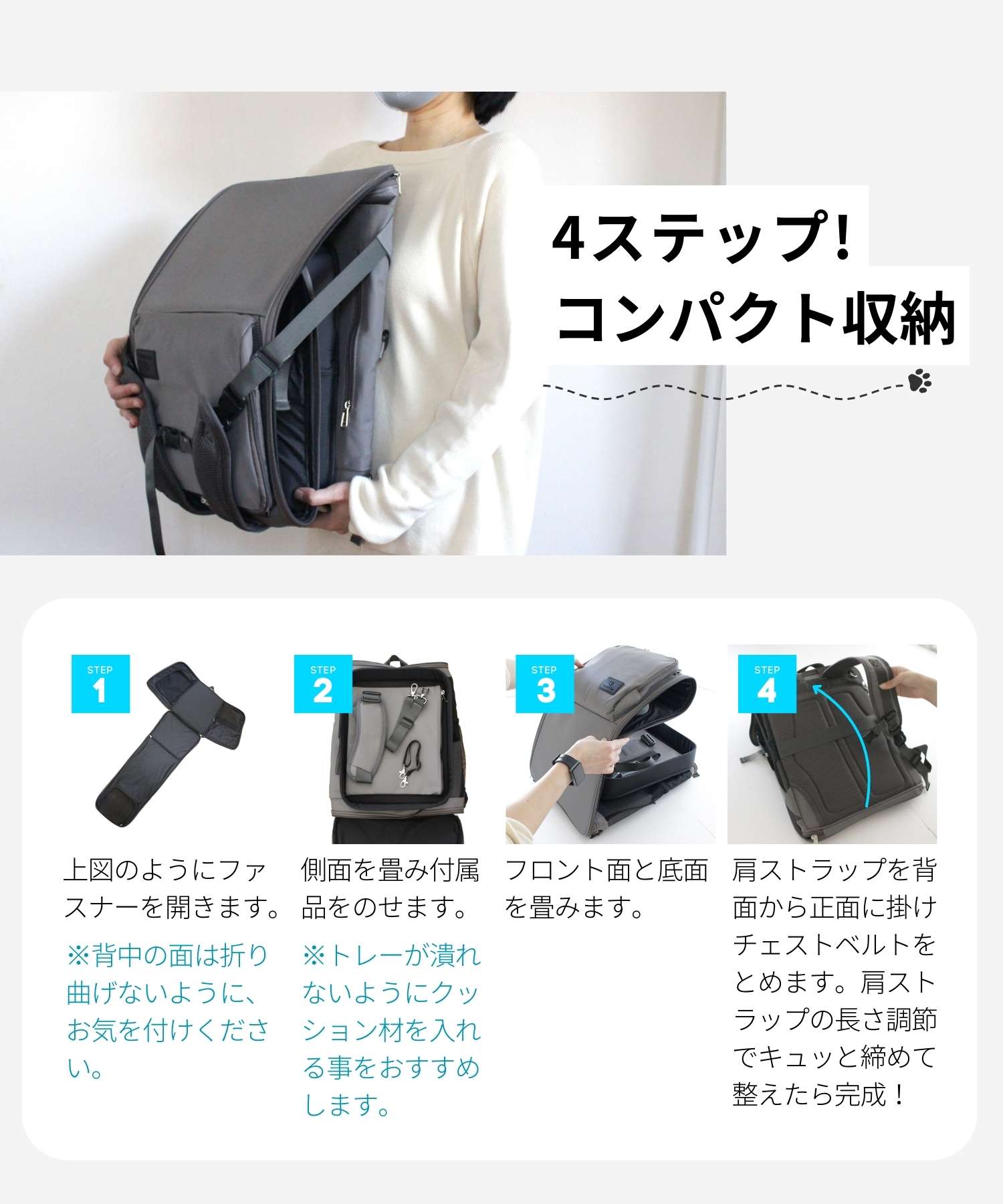 まだパピーなのでリュック内にトレーがあるのもポイント!