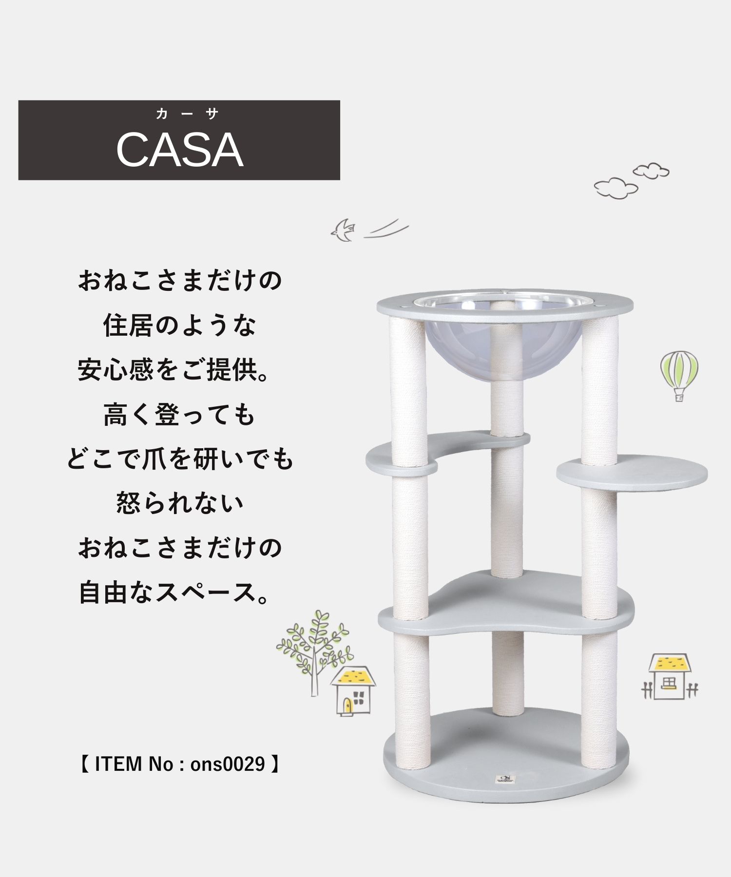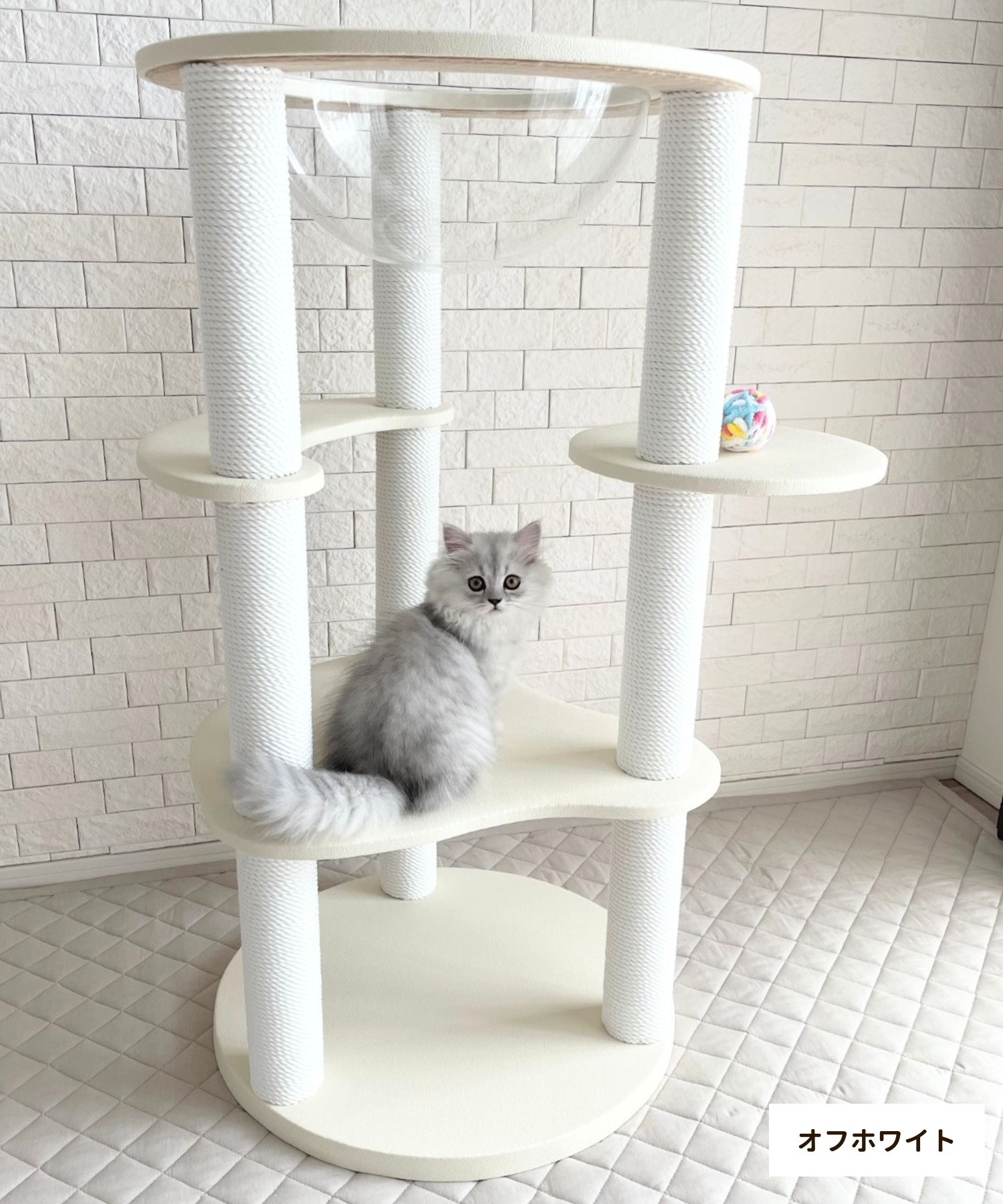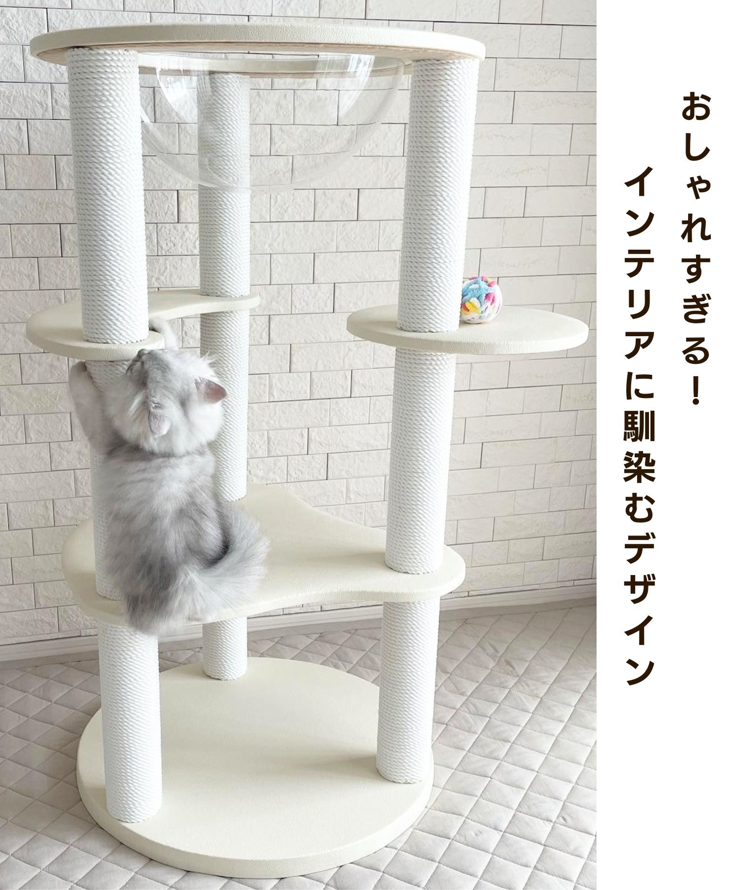 【送料無料】国内制作 日本製 スケルトンボウル付き レザー調キャットタワー 子猫 老猫 高齢猫 シニア猫 猫タワー 爪とぎ 猫用 キャットタワーCASA カーサ 据え置き 97cm