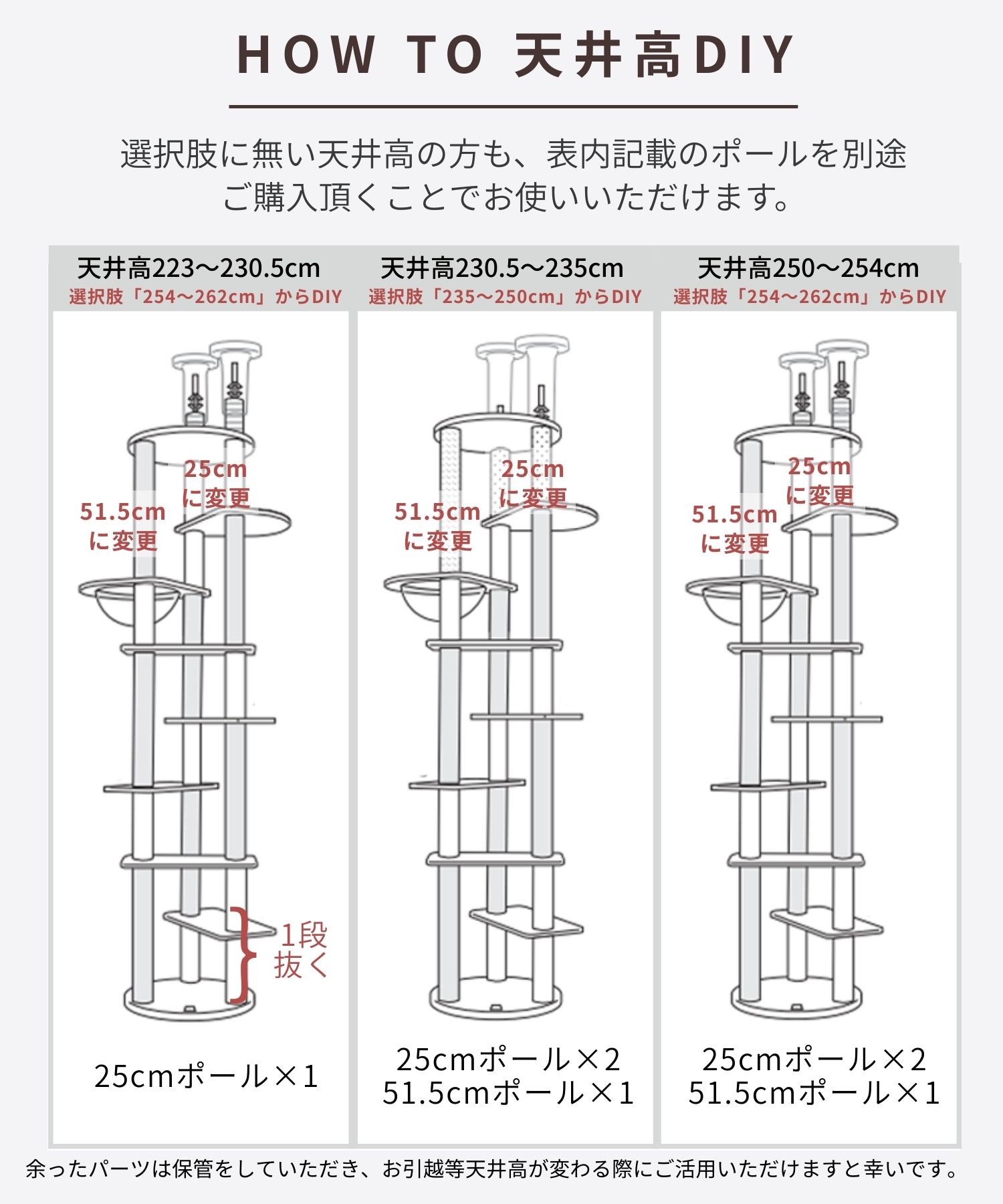 サイトをよーく見ると、クーポンや滑り止めシールサービスなどあって、良心的!引越して天井高が変わっても、パーツ購入できれば問題ないかと思いました。 -