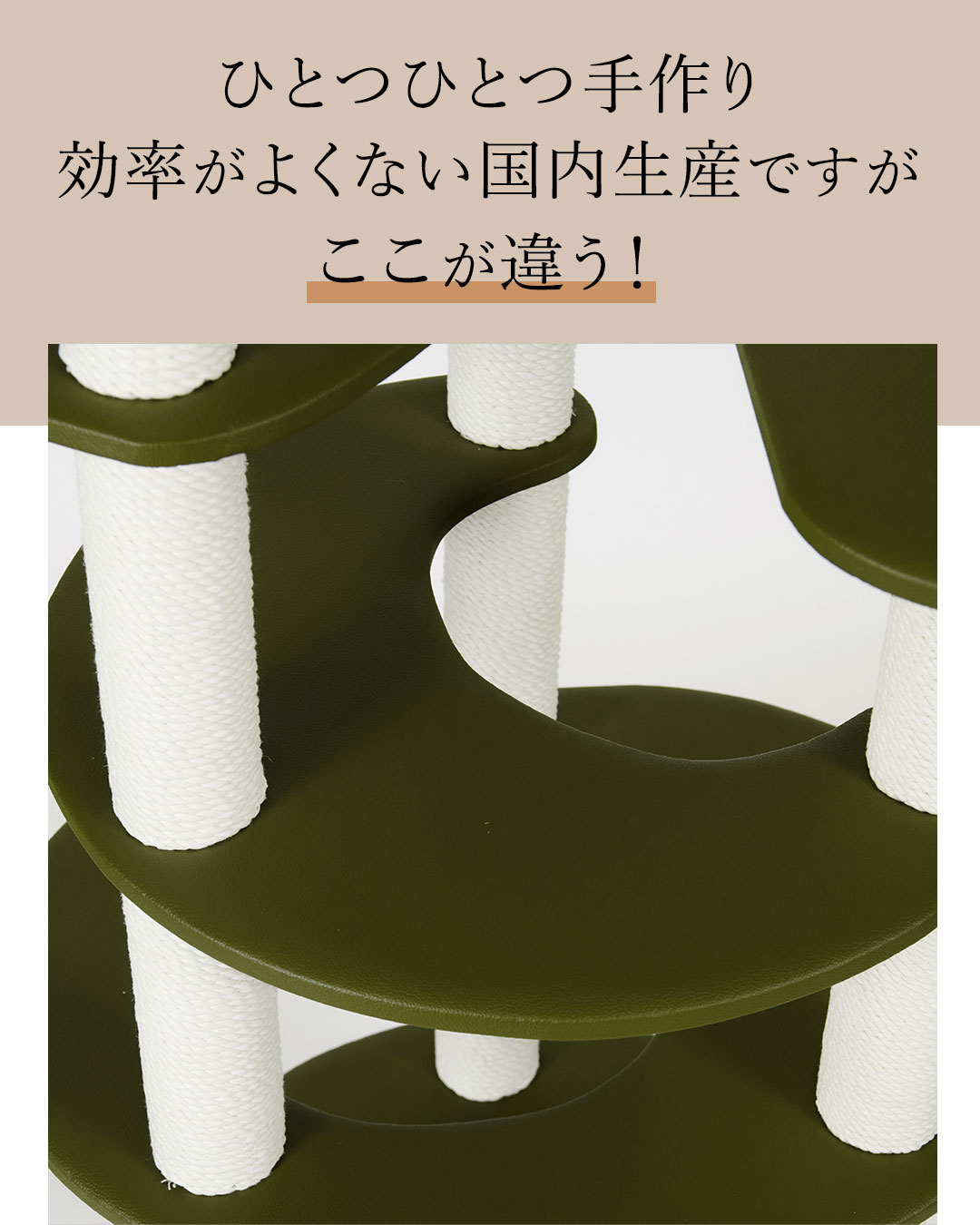 前のタワーは毛が溜まってしまったり、布部分が破けてしまったりして掃除や管理が大変でしたが、こちらの商品はレザーに毛がつきづらいので掃除も楽で清潔に保てるし、猫の爪が当たっても傷がつきづらいためとても長持ちしそうです。また、交換パーツが豊富なのもとても嬉しいです!
