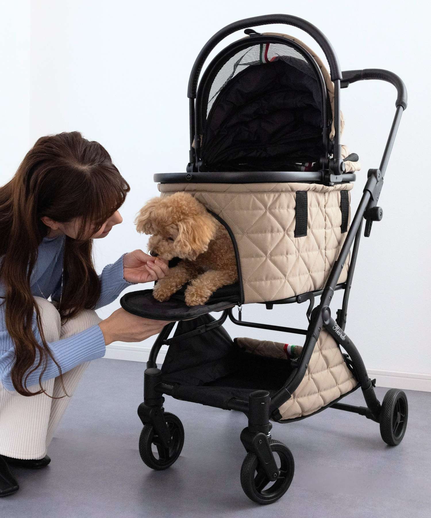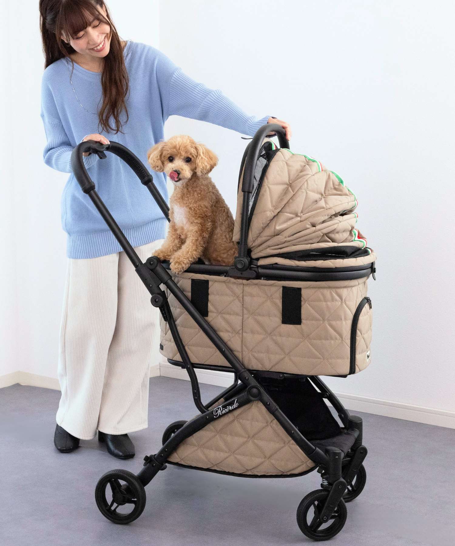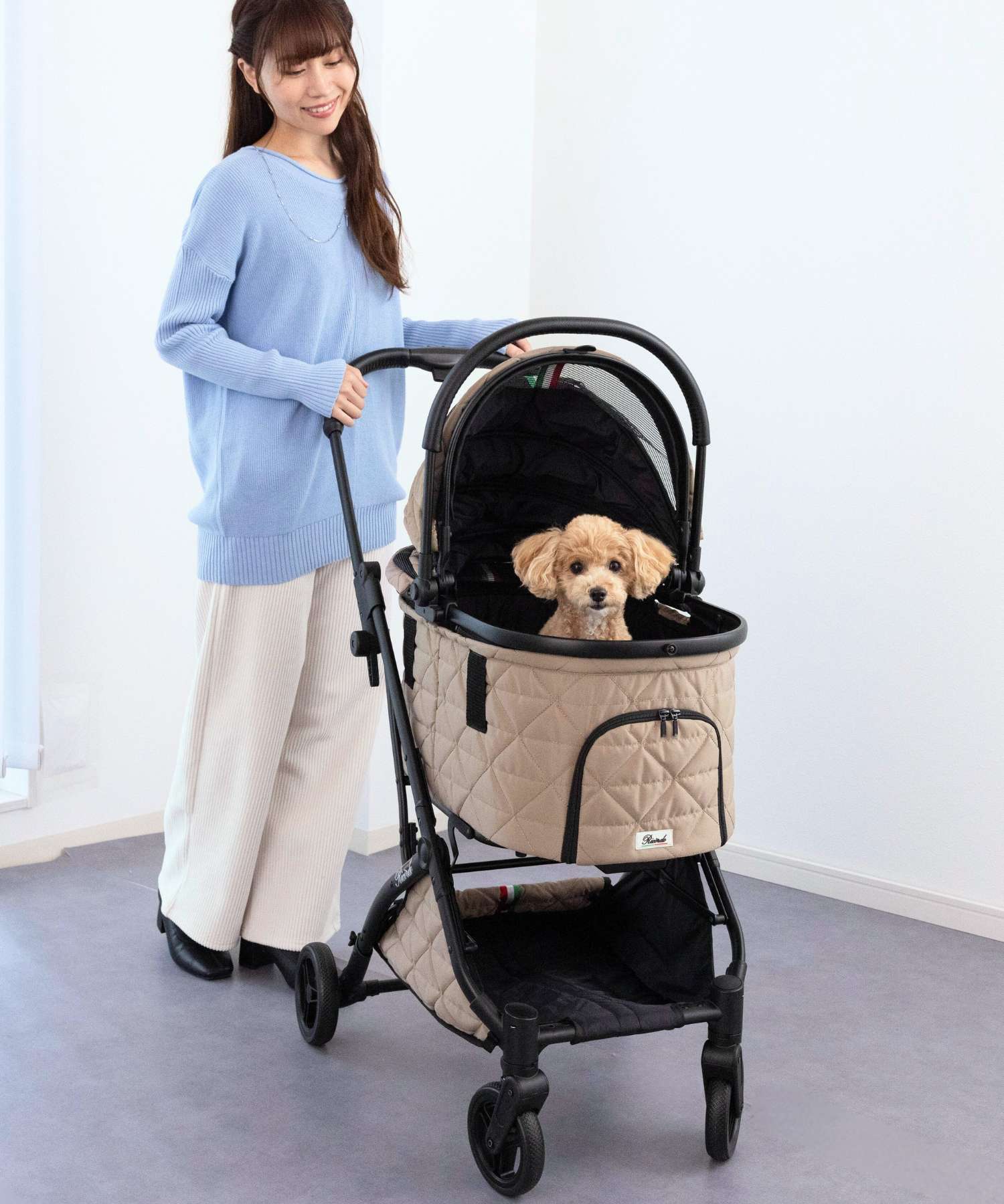 ドームを下ろした時にメッシュ部分からお顔が見えてしまうのと(全て隠れる方が好みです)、サイズが若干大きくなるので迷いましたが、操作性の良さが決め手となって購入しました。