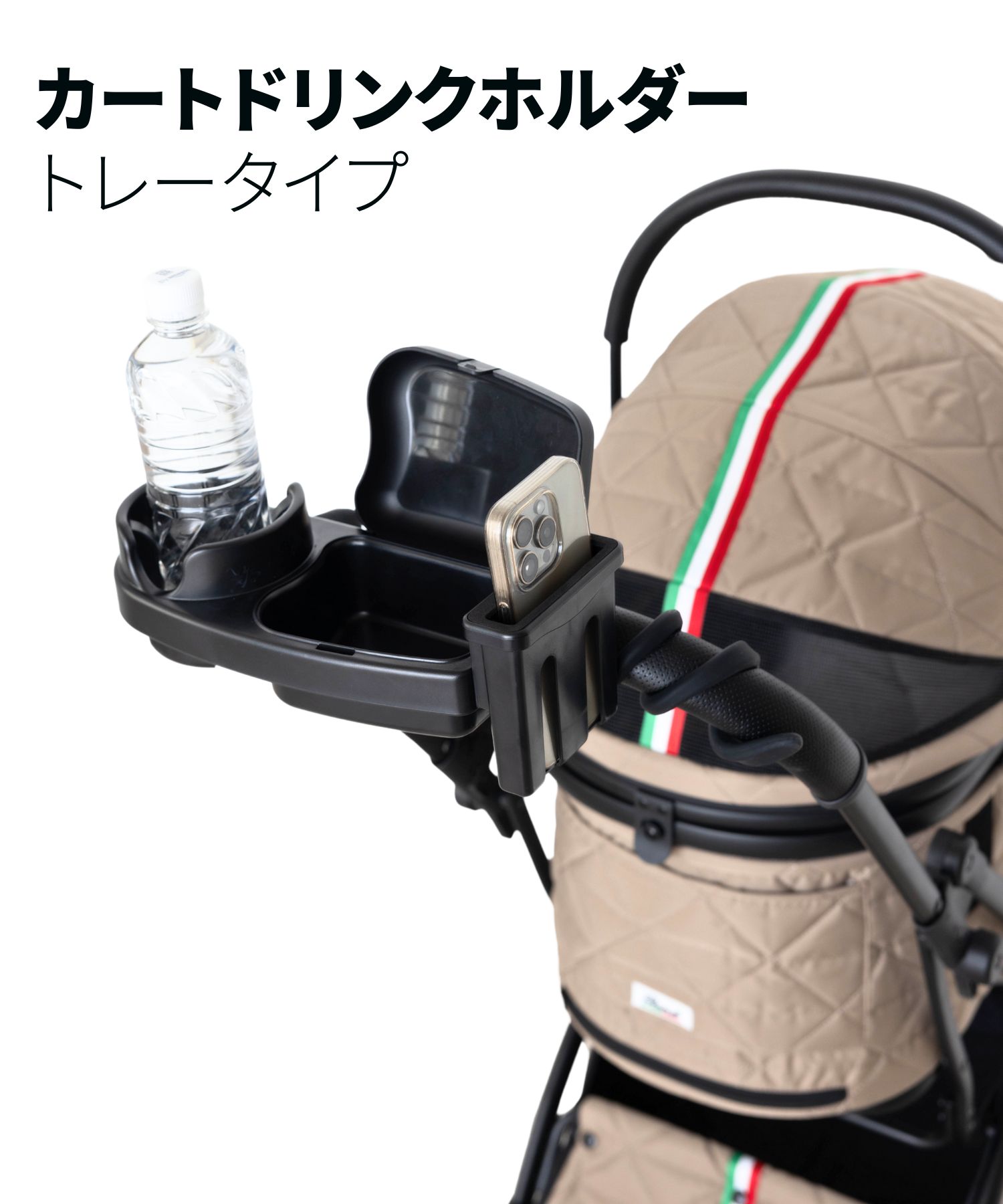 ONEKOSAMA OINUSAMAのペットカートにぴったりの「ドリンクホルダー トレータイプ」は、便利さと機能性を兼ね備えたアイテムです。 ペットとのお出かけ時に、飲み物やスマホをしっかりと固定できるので、安心してお散歩を楽しめます。 トレー部分には小物も収納可能で、ちょっとしたおやつや鍵などもすっきり整理できます。取り付けも簡単で、すぐに使えるのが嬉しいポイントです。 ペットとのお出かけがもっと楽しくなること間違いなし!