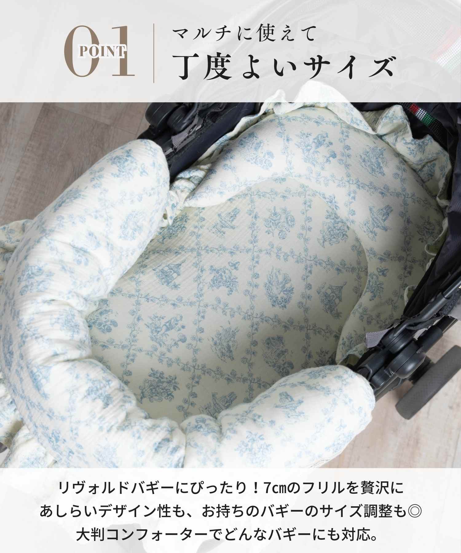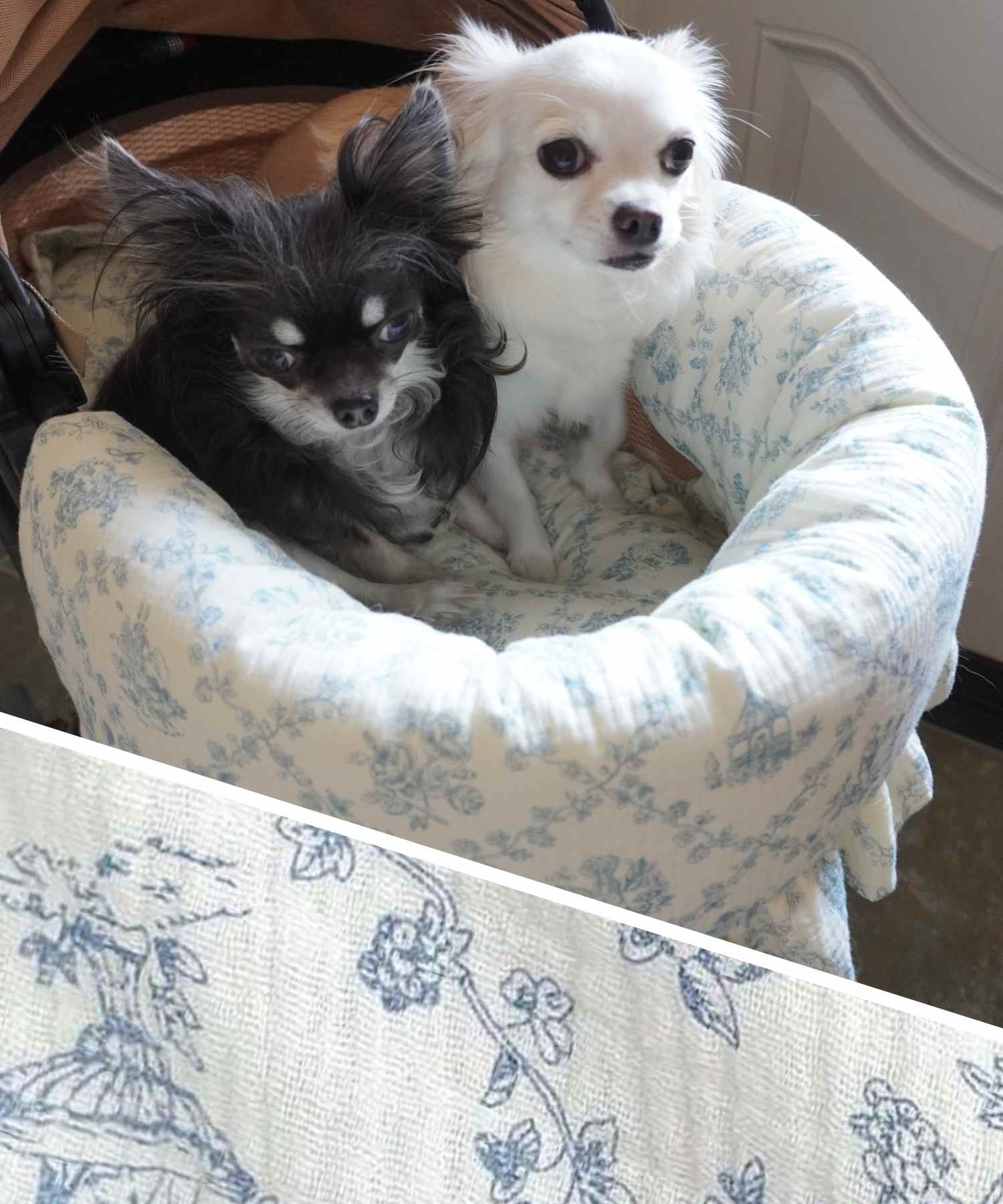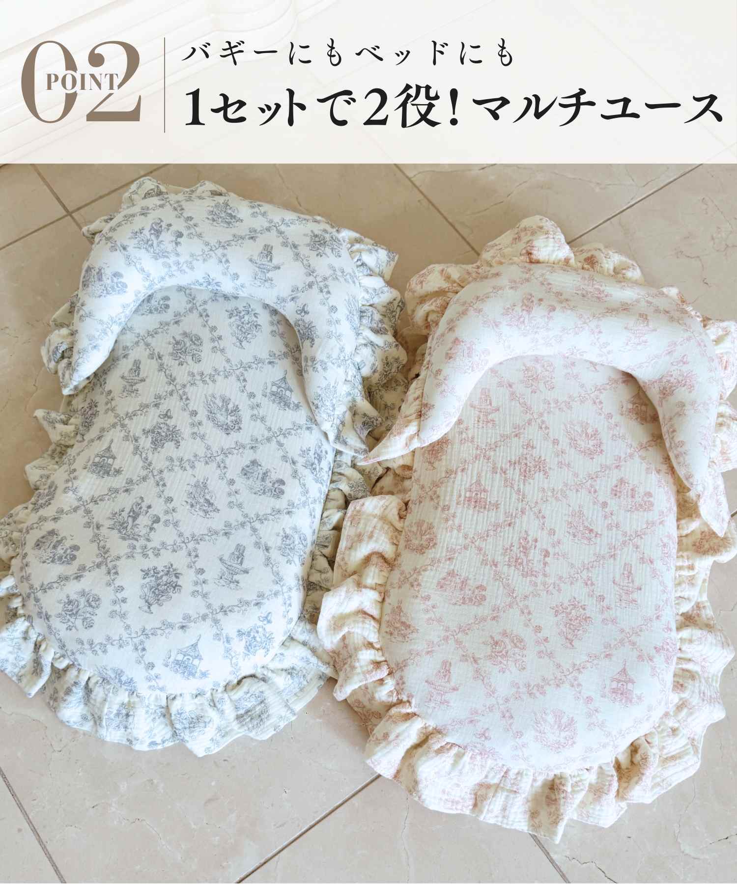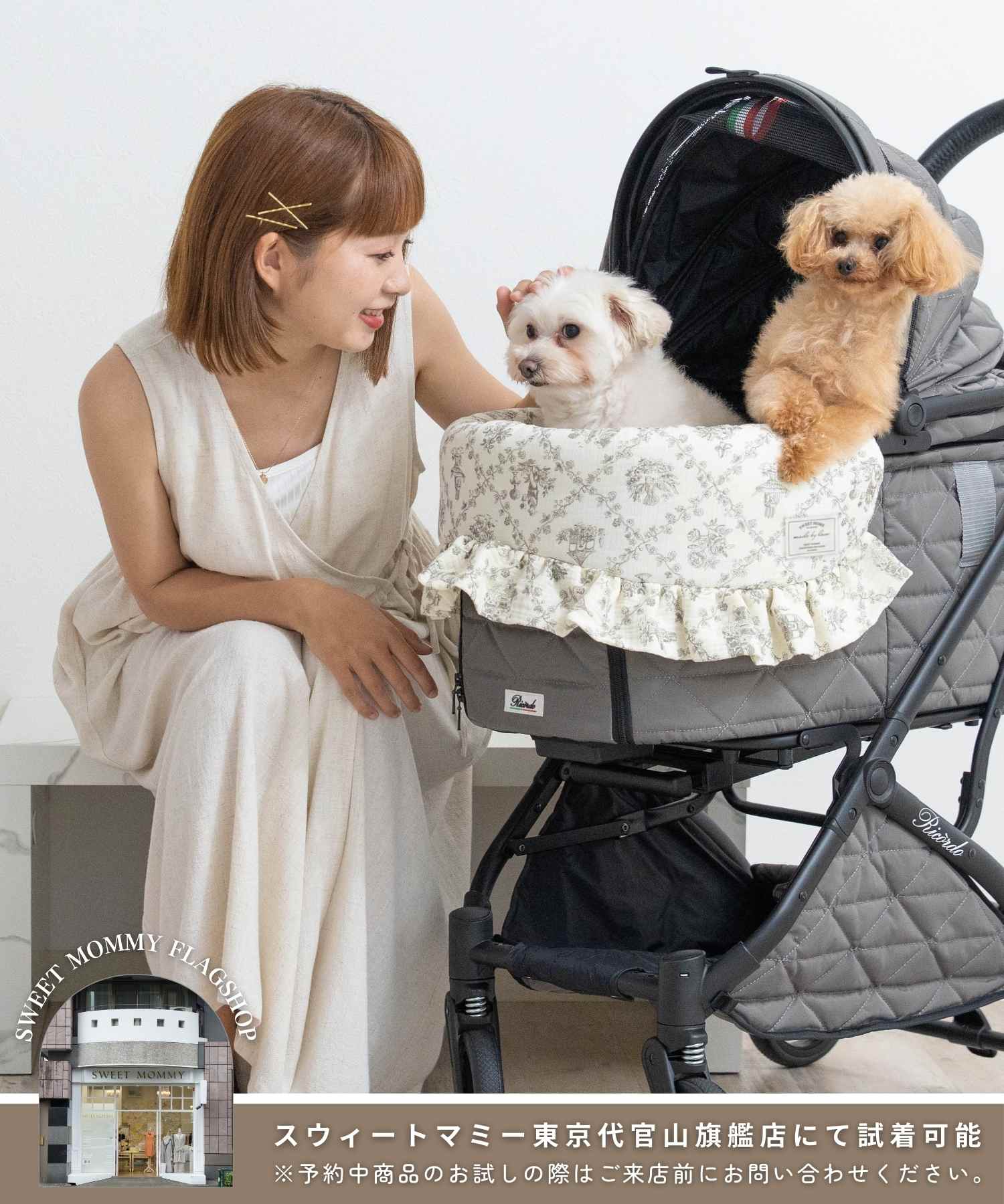 可愛らしいトワルドジュイ柄でカートが華やかに♪ フリル付きクッションでお出かけがもっと楽しくなる、ペットカート用カバーです。 約7cmのふっくら厚みでワンちゃんもリラックス。 取り外してベッドとして旅行先やおうちでも活躍します。 カバー・クッションとも丸洗いOKの安心マルチユースアイテムです。