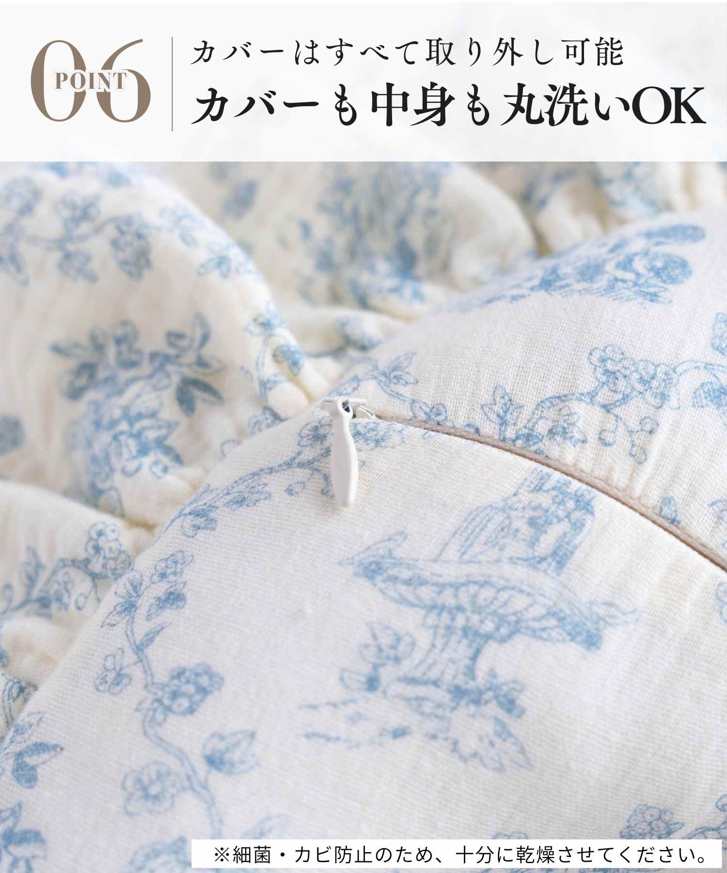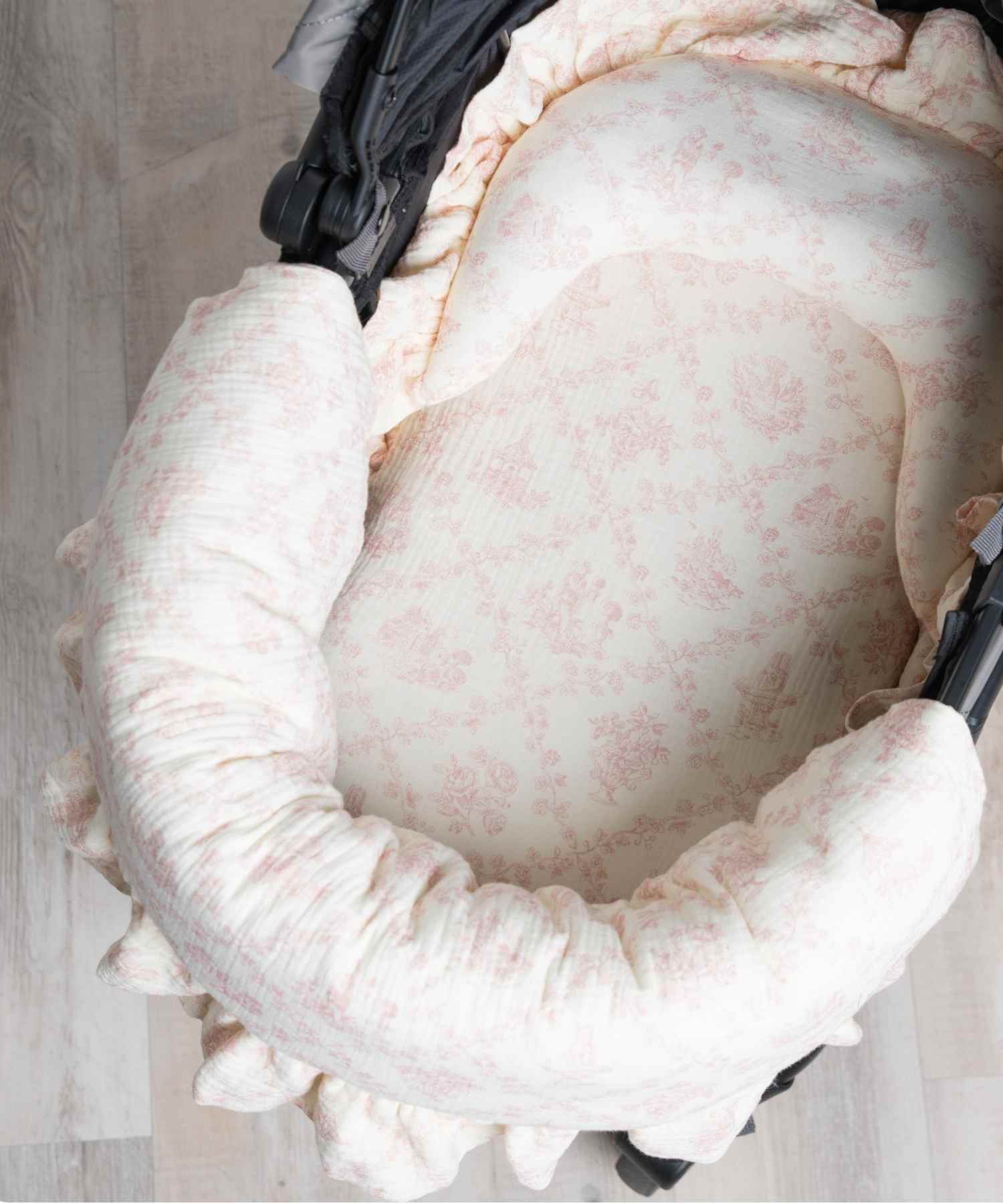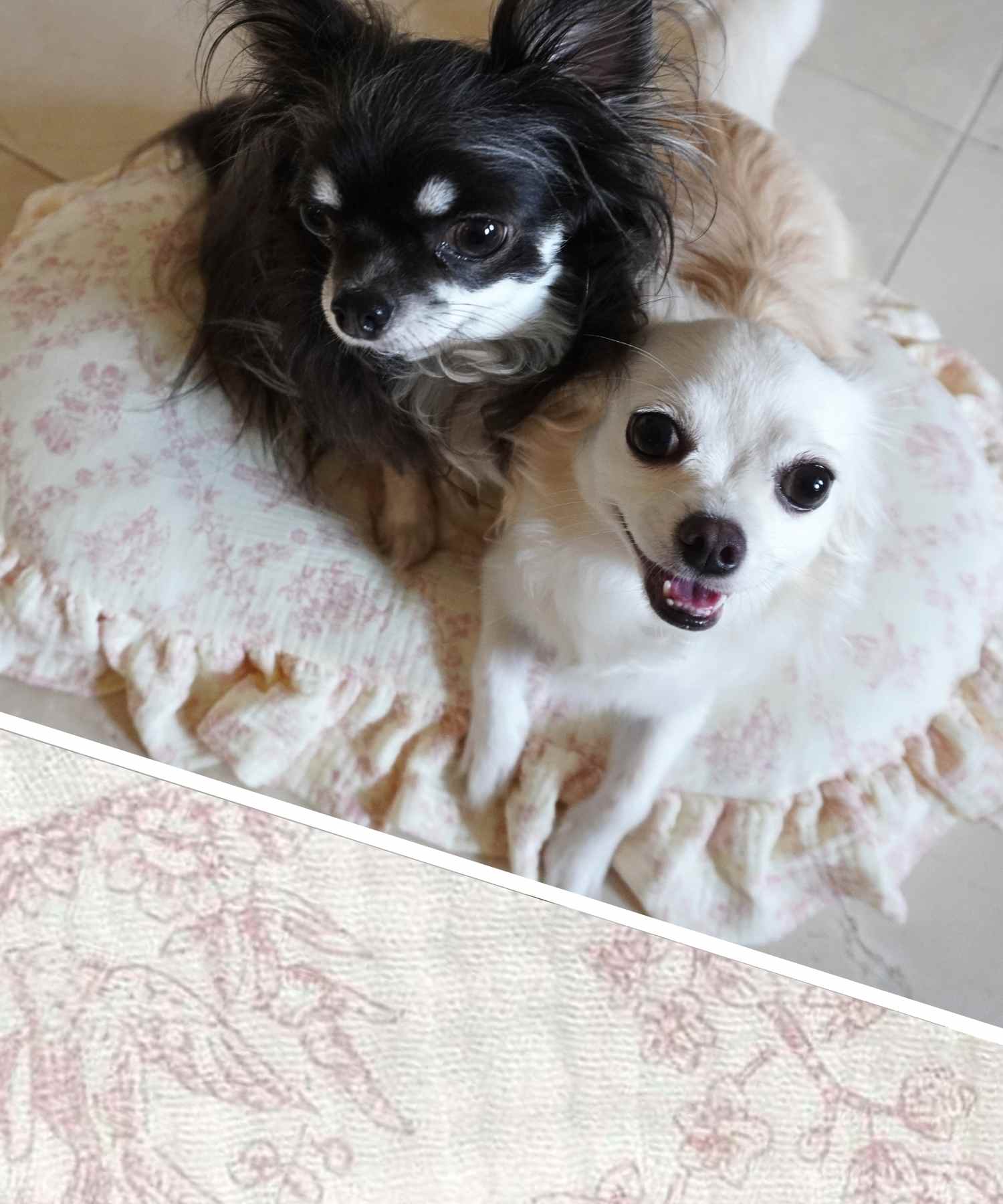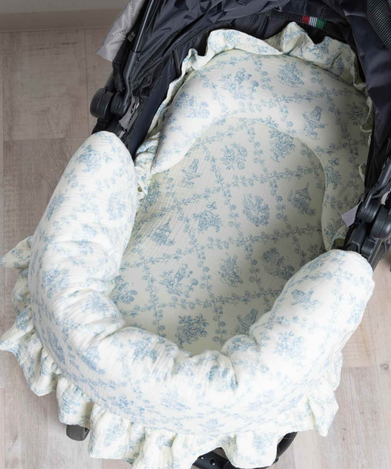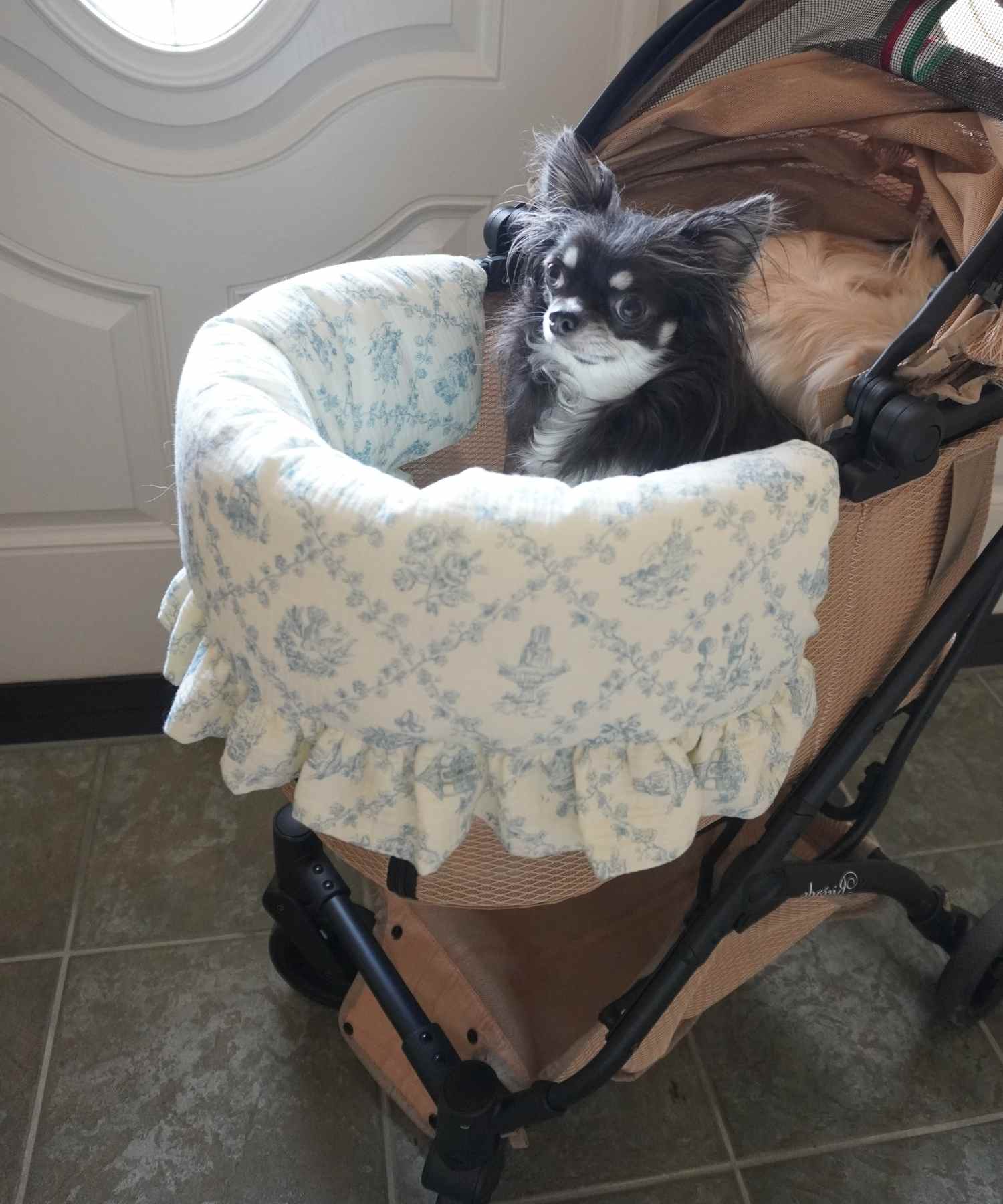 可愛らしいトワルドジュイ柄でカートが華やかに♪ フリル付きクッションでお出かけがもっと楽しくなる、ペットカート用カバーです。 約7cmのふっくら厚みでワンちゃんもリラックス。 取り外してベッドとして旅行先やおうちでも活躍します。 カバー・クッションとも丸洗いOKの安心マルチユースアイテムです。