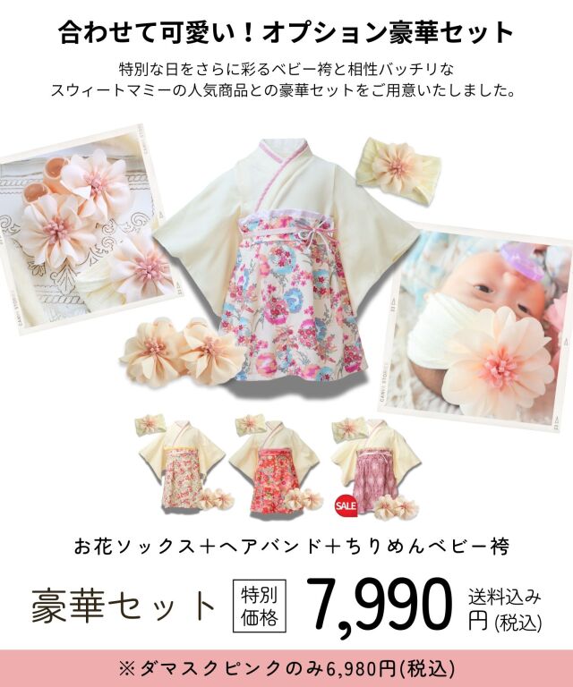 ダマスク柄ピンク以外 袴単品 6,980円(税込) 豪華セット 7,990円(税込)