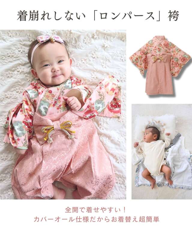 【会員限定 送料無料】袴 ロンパース 女の子 女子 春 夏 秋 冬 100日祝い 初節句 オーガニックコットン カバーオール 赤ちゃん ベビー フォーマル ベビー服 ベビー袴 袴ロンパース お食い初め 出産祝い ひな祭り お宮参り 結婚式 親子リンク コーデ 50 60 70 80 90 和服 和装 和風
