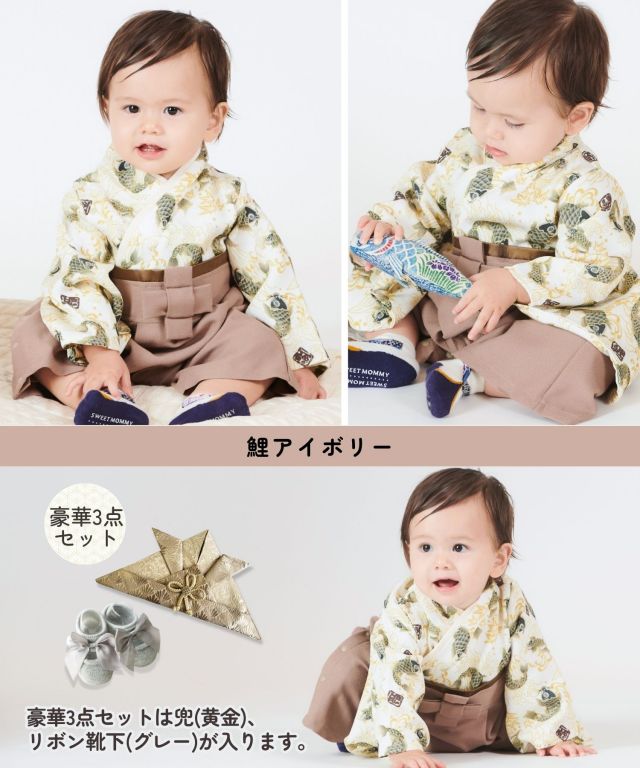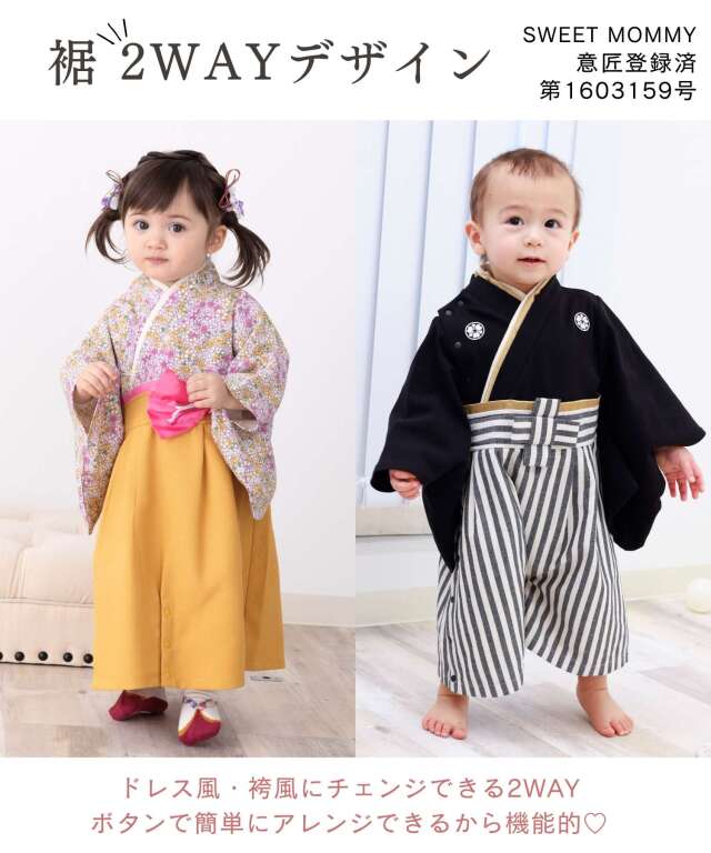 七五三やお正月、ハーフバースデーやお披露目など、様々なシーンで活躍するマタニティウェアと授乳服の通信販売スウィートマミーおすすめの袴風カバーオール。華やかなベビーウェアは好印象間違いなし!着せやすさも、優しさもベビーーの事を1番に考えました。
