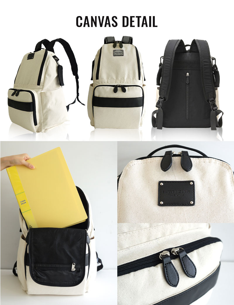 ■素材 強撥水ナイロン、高密度メッシュ、内側防水キャンバスの3種類からお選び頂けます。 強撥水ナイロン、内側防水キャンバスは丈夫で汚れに強くお手入れが楽ちん。メッシュ素材は通気性抜群で夏のお出掛けにぴったり。あのイヤな背中のムレに、もう悩みません。さらに丸洗いOK!