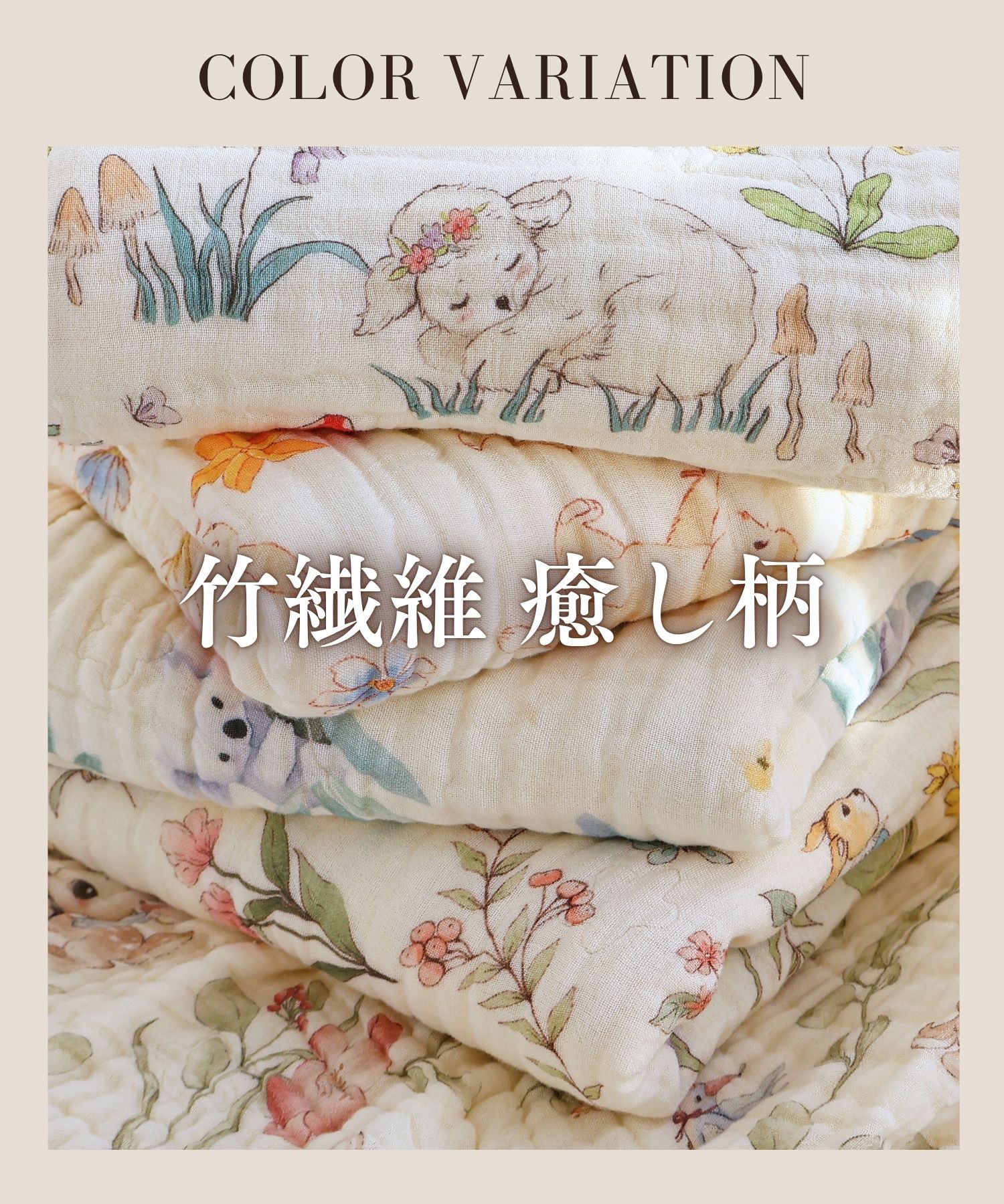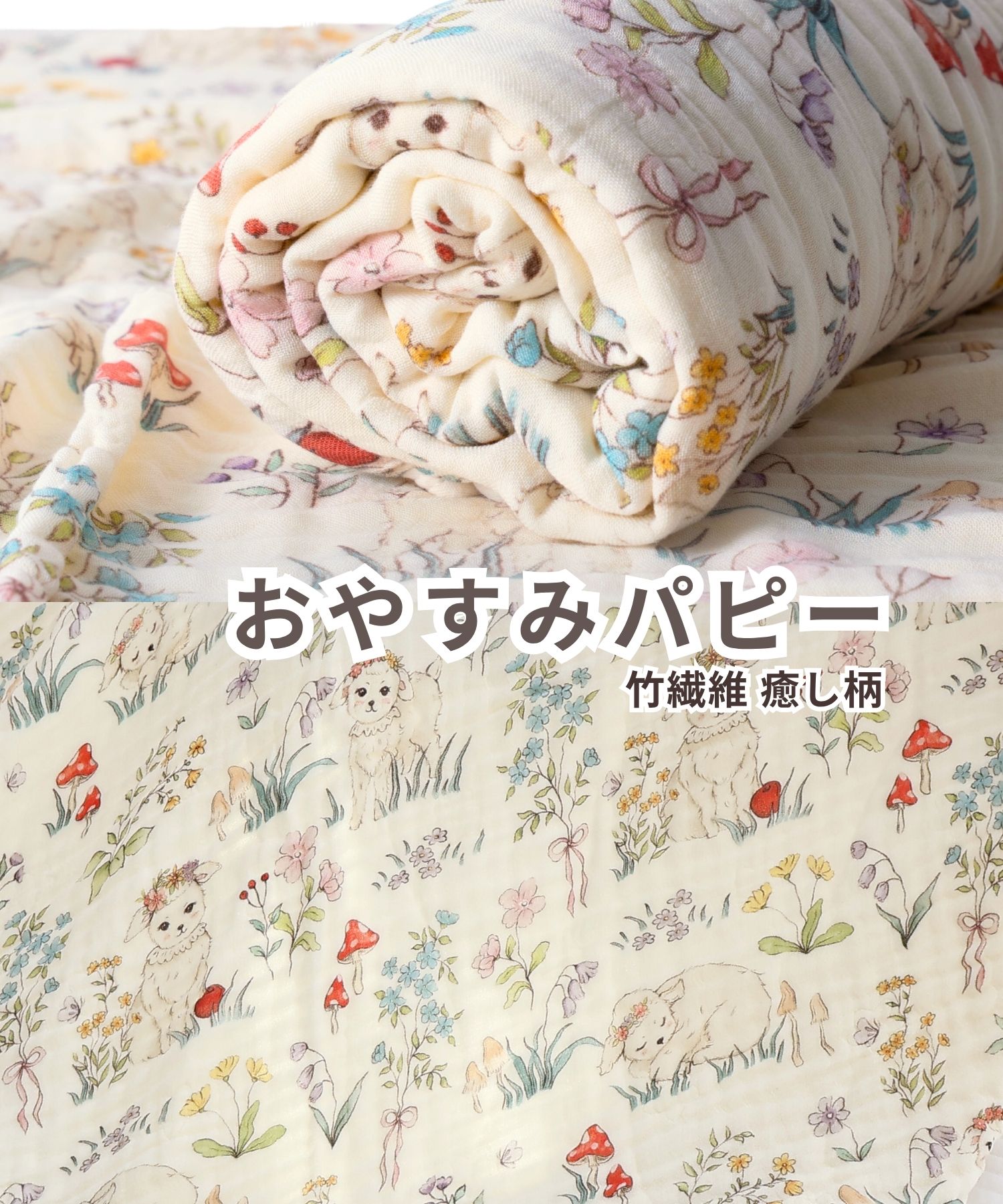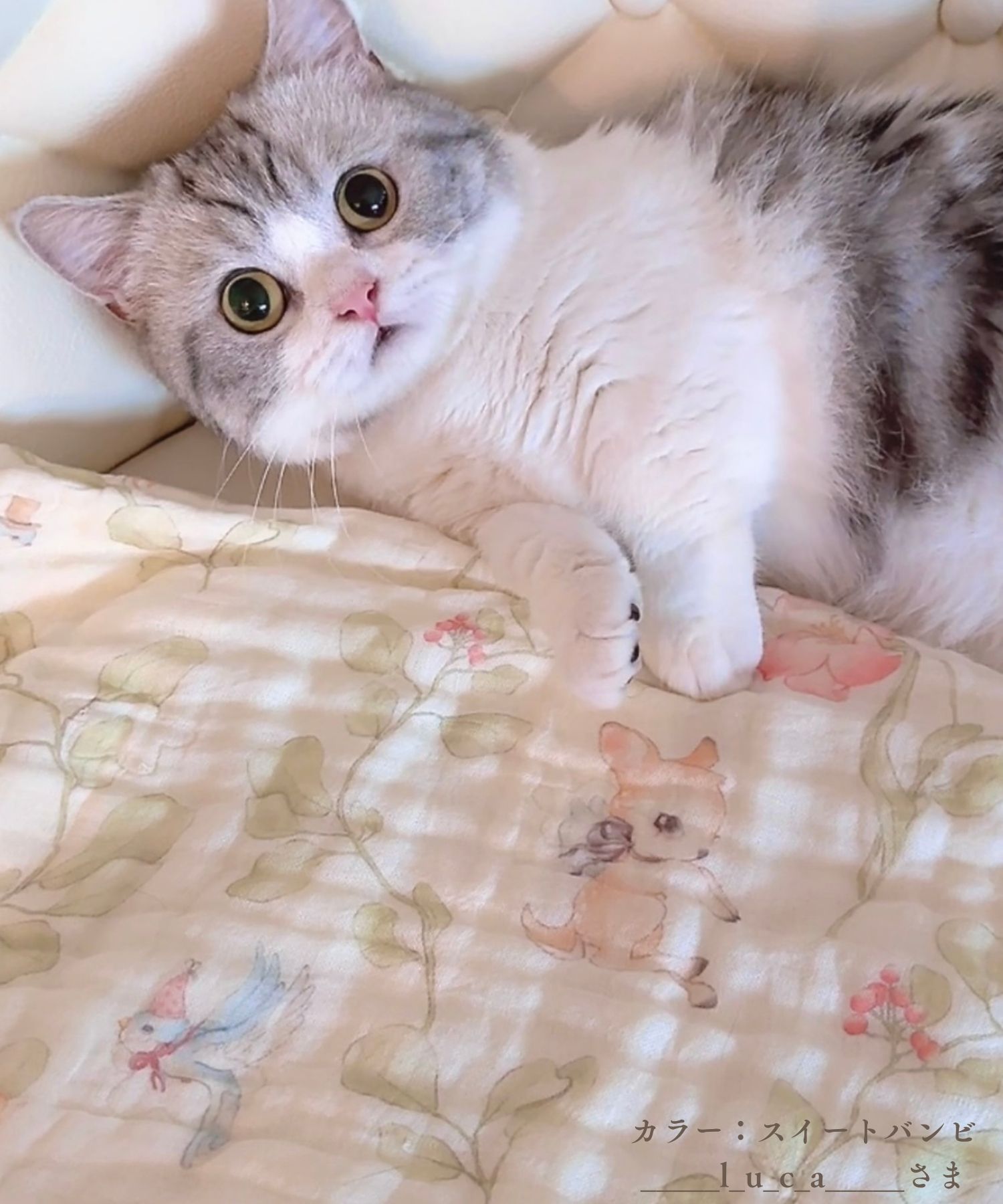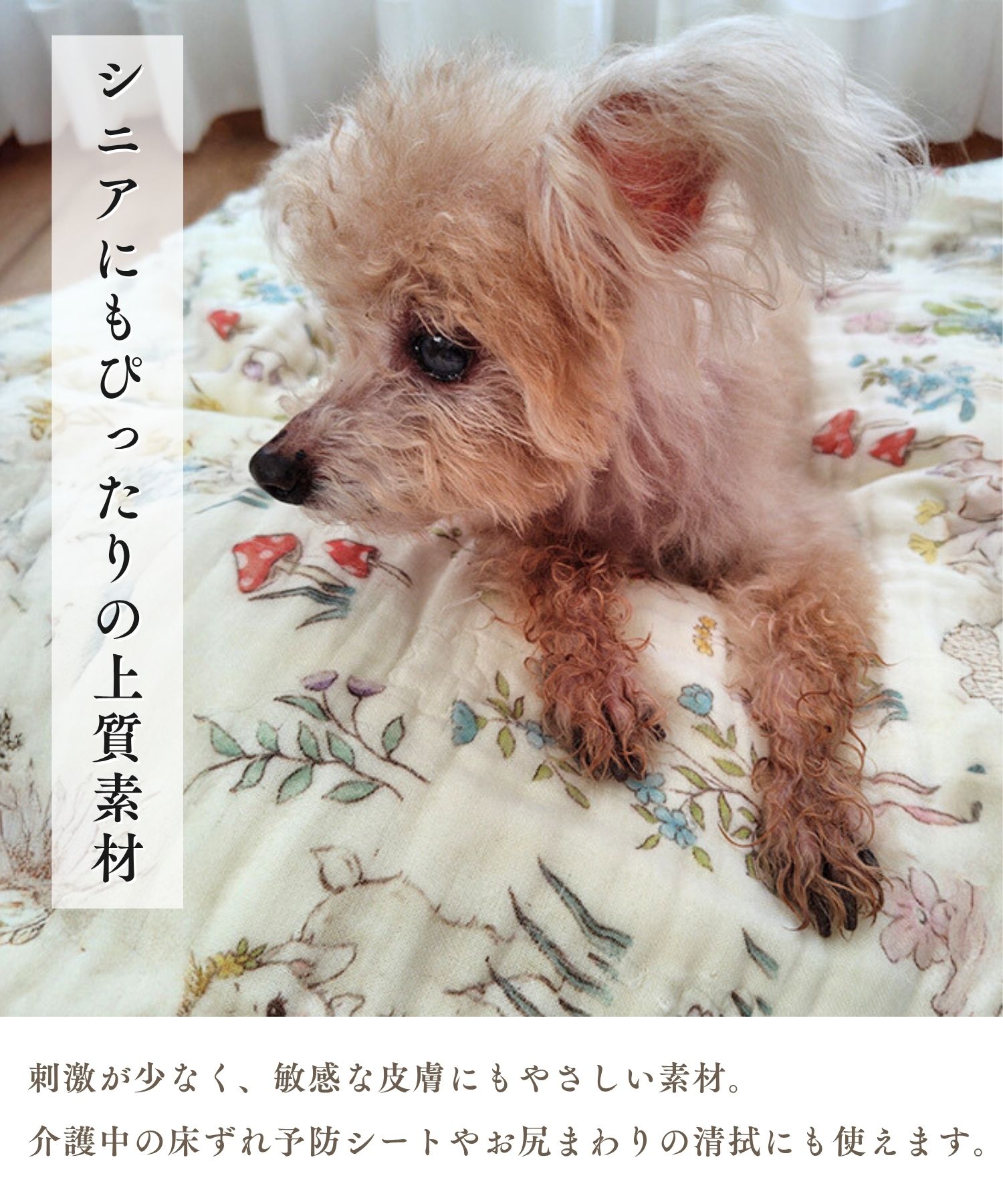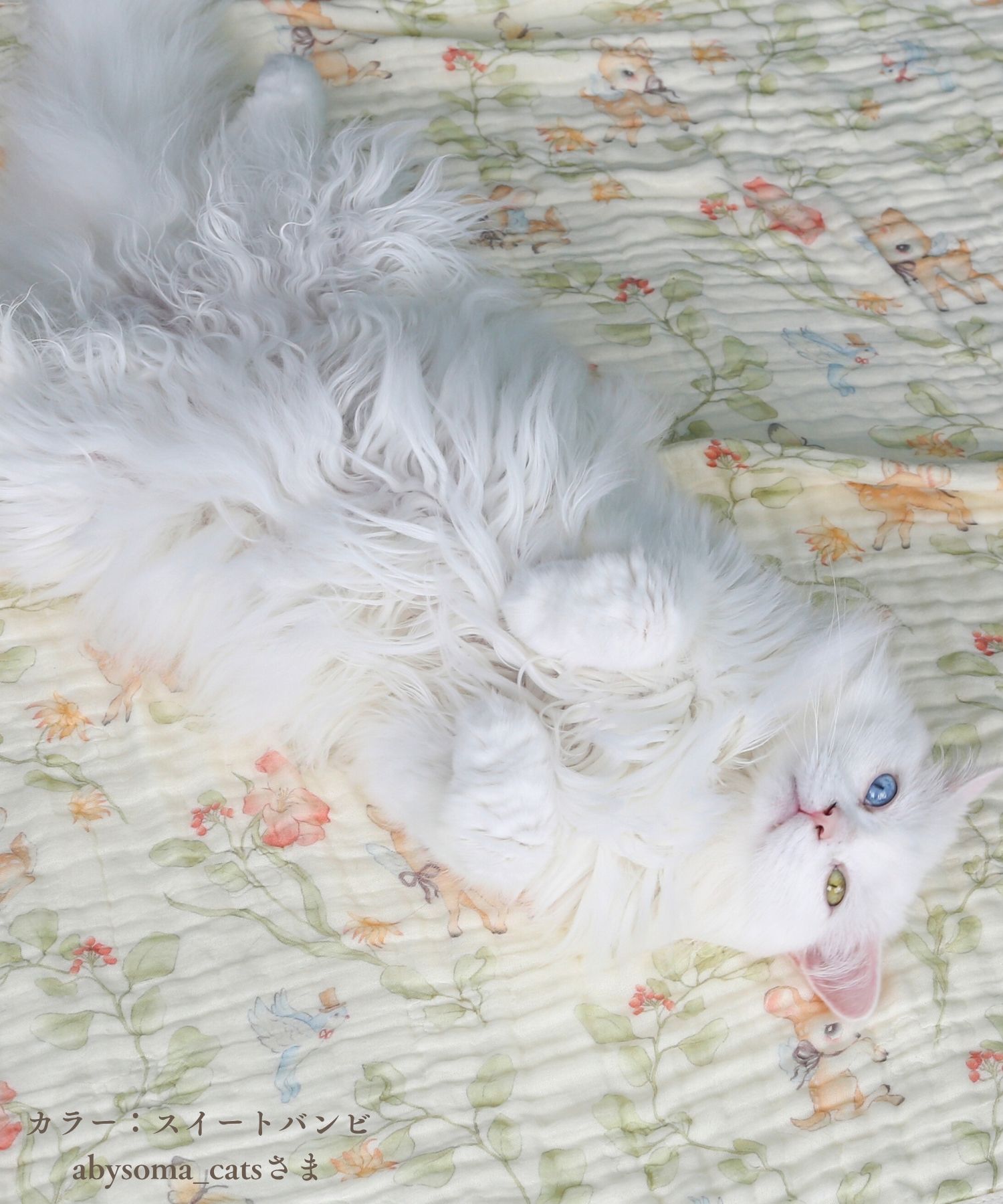 触り心地はもちろん 清潔感ある素材の香りと、 使っていてほっこりするイラストが 最高に可愛いです!! 大判なので使い勝手もよく、 畳んだらカフェマットのように 冷えてきたら愛犬を包んであげられたり、おうちだけでなくお出かけでも大活躍です!