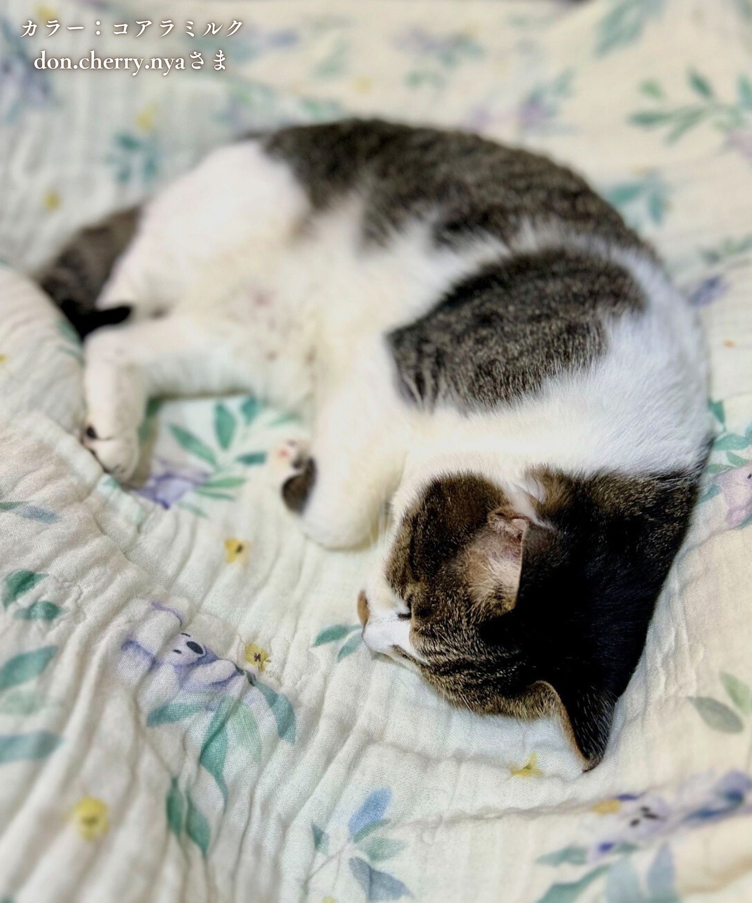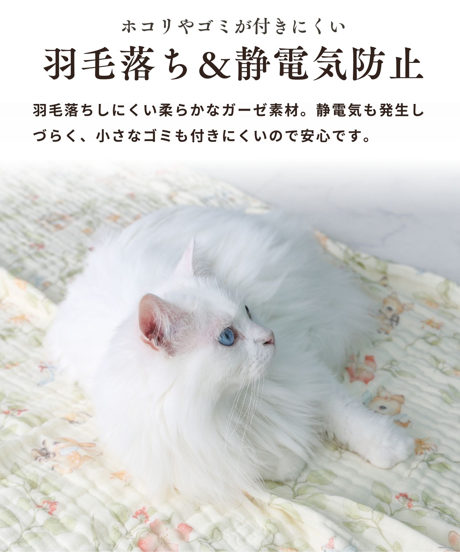 柄が可愛くて手触りも良く、洗濯機で洗ってもよれないので重宝しています。猫達もお気に入りです。