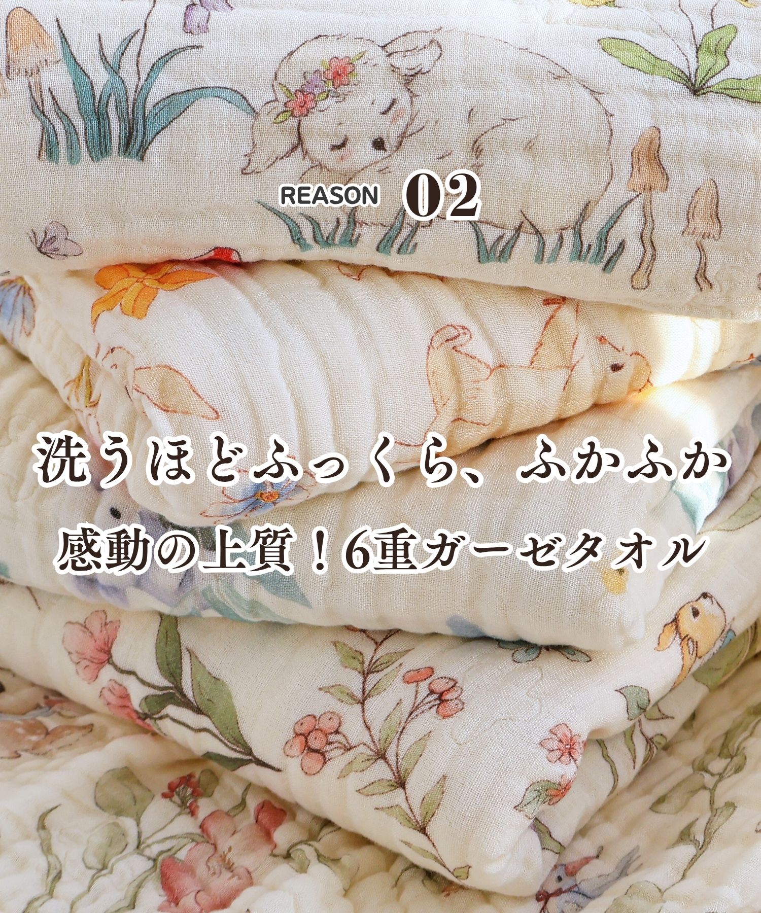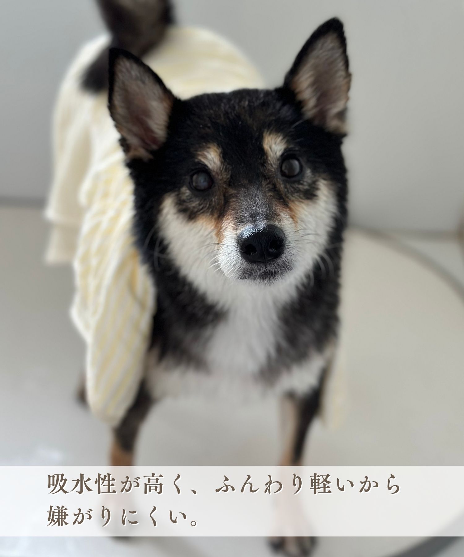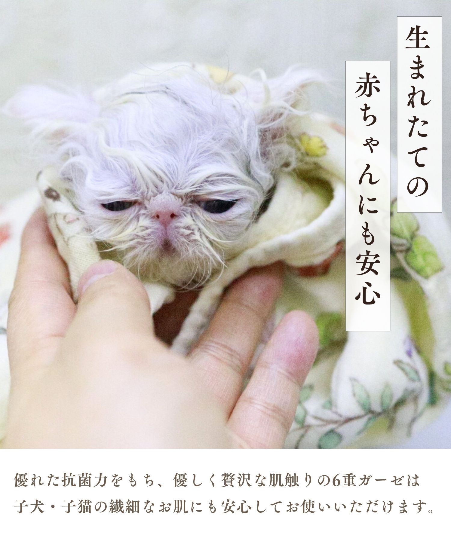 肌触りが優しく、吸水性に優れた6重ガーゼタオルです。 竹繊維を織り込むことで、天然の抗菌作用もあり、清潔に長時間使用できます。 6重構造により、ふわっとした柔らかさと弾力感が感じられ、肌に優しく触れるので、おいぬさま・おねこさまにも安心してお使いいただけます。 通気性にも優れており、洗濯しても乾きやすく、常に爽やかな使用感が叶います。 大判サイズなので、バスタオルやガーゼケットとして、また外出時のおくるみやペットカートの敷物としてもご使用いただけます。 おしゃれで可愛いレース柄ジッパー袋に入っており、ちょっとしたギフトにも最適です。
