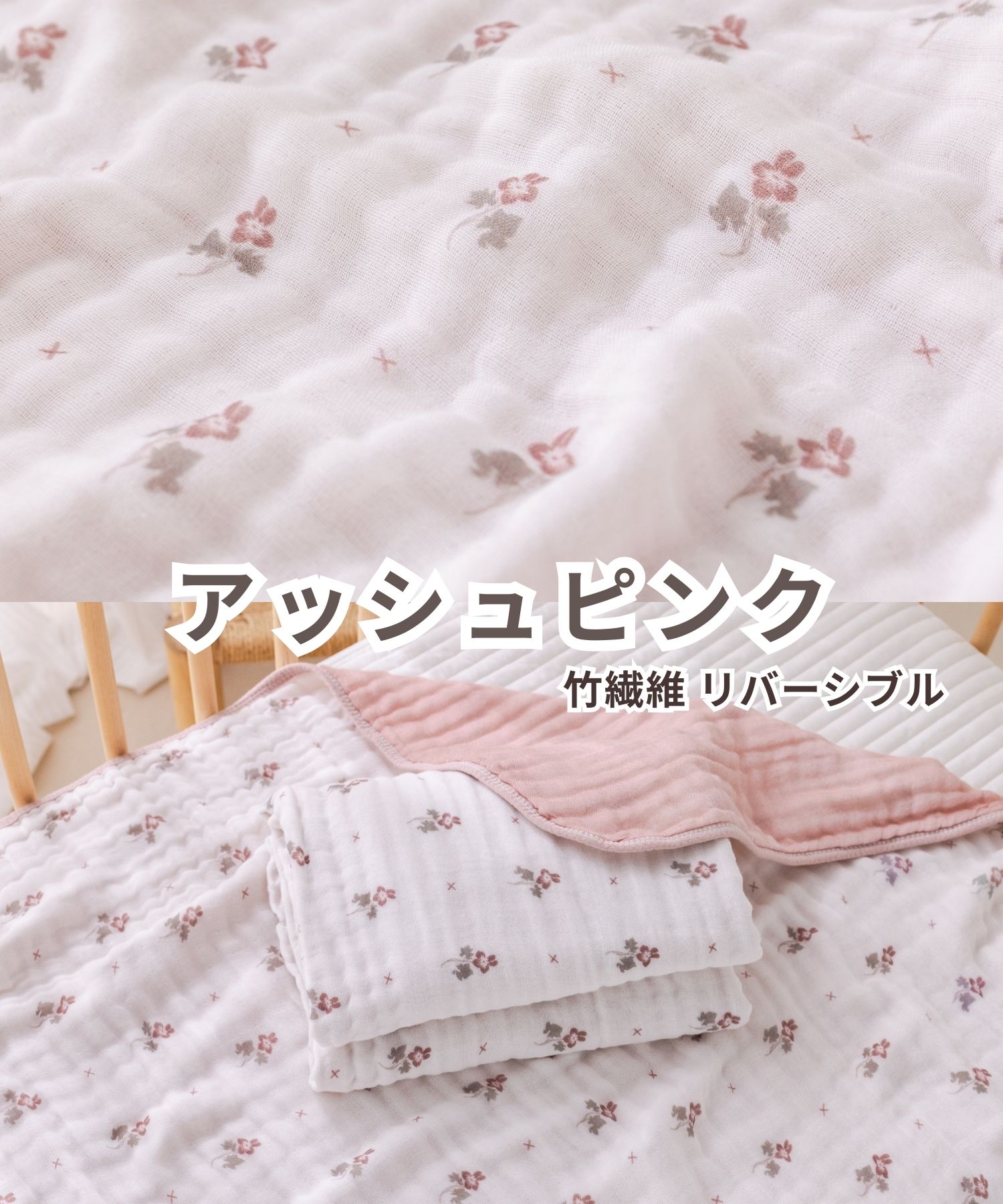 【竹繊維 リバーシブル】アッシュピンク