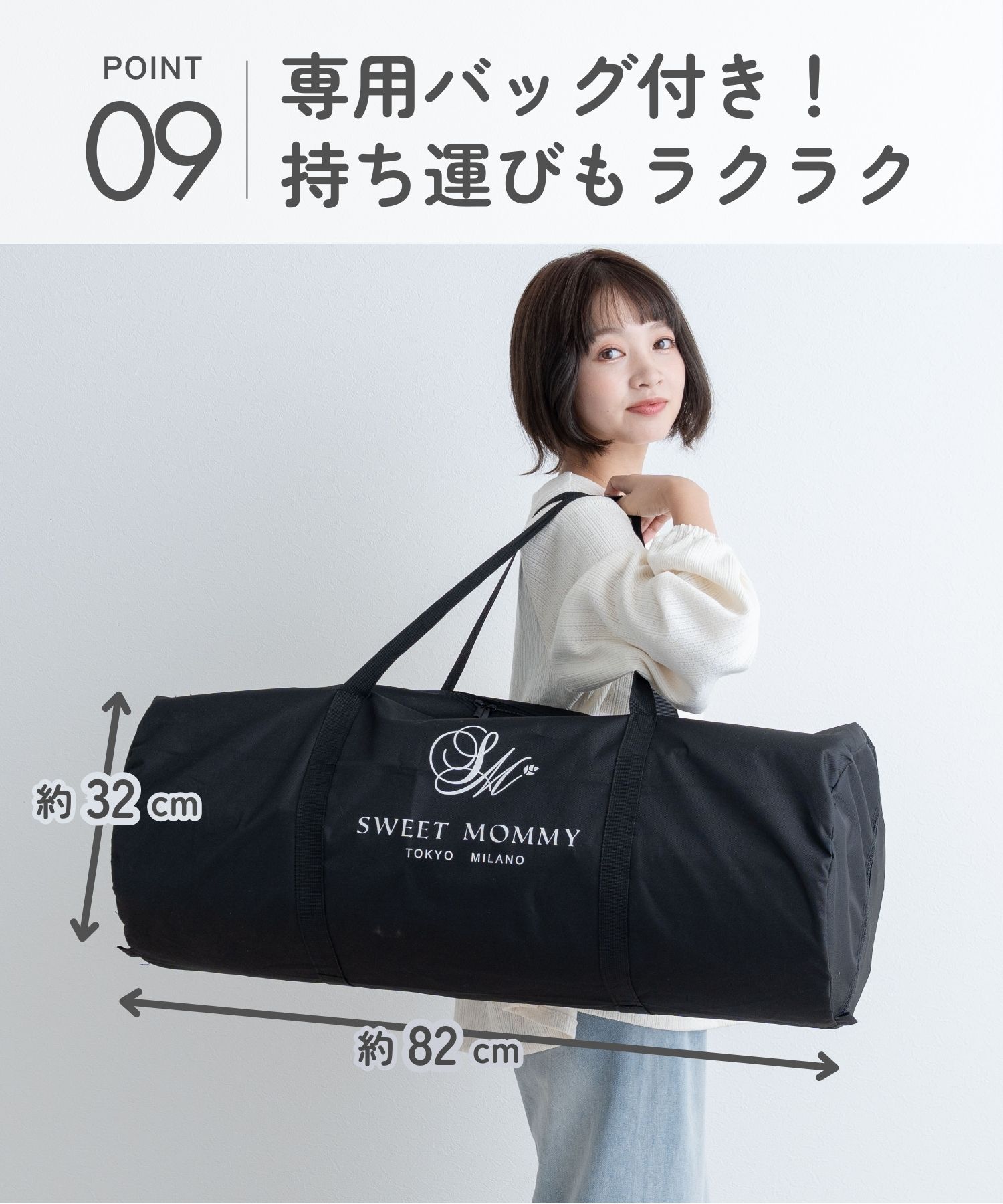 リビングの遊び場からお昼寝、旅行や帰省時まで、さまざまなシーンで活躍します。