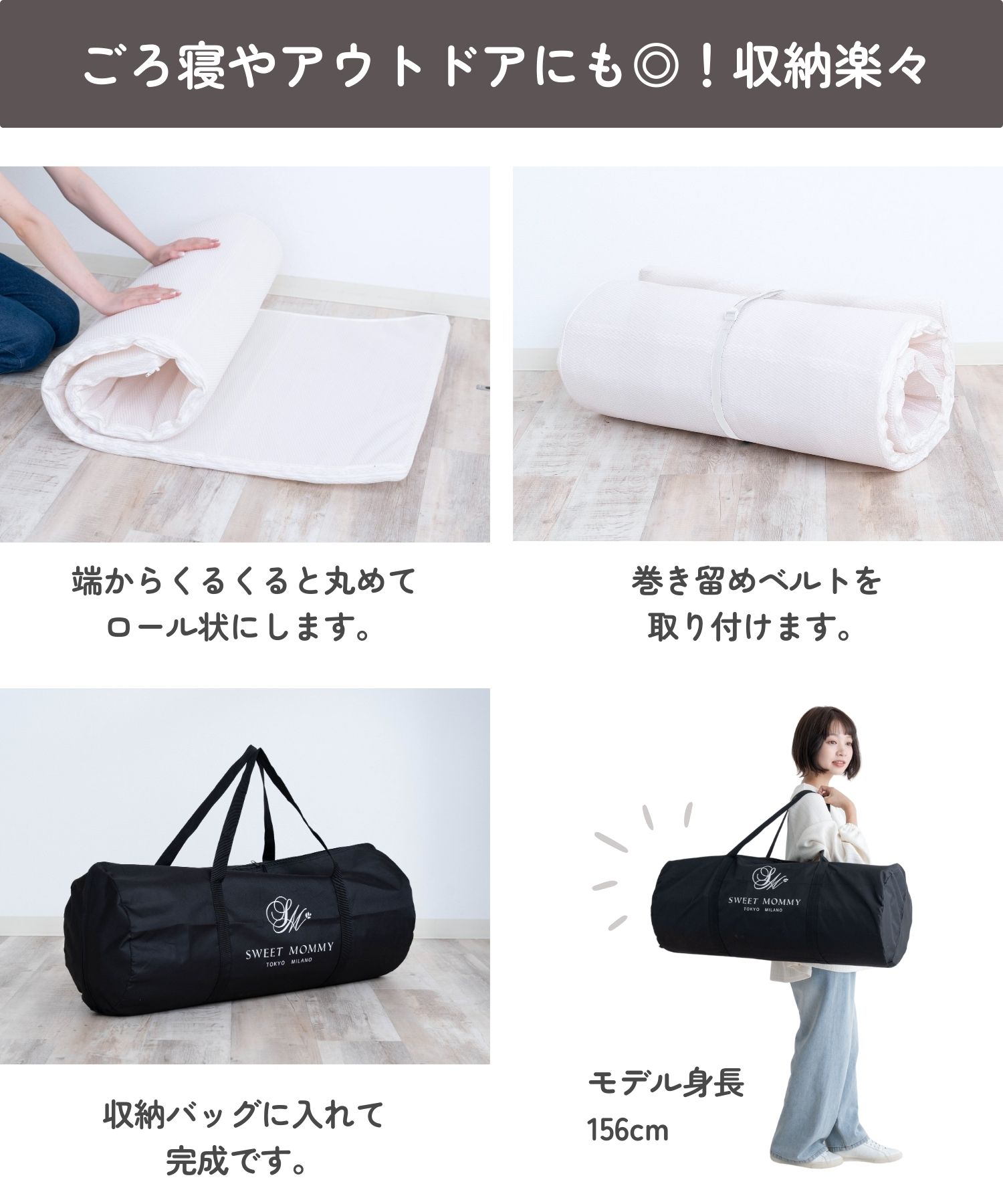 お手持ちの寝具に重ねて使えば、ちょっとしたマットレス代わりにもなります。