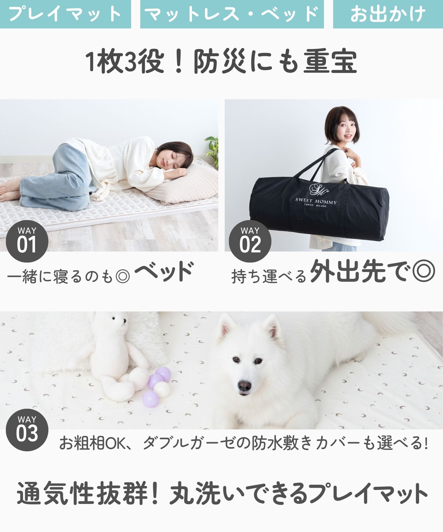プレイマット 折りたたみ シームレス 洗える 4Dポリマーエアファイバー 通気性 収納バッグ付き 持ち運び アウトドア ごろ寝 お昼寝 マットレス 敷きカバー 敷きマット 総柄 おしゃれ 子ども キッズ 犬 猫 ペット 防水 BreathMat